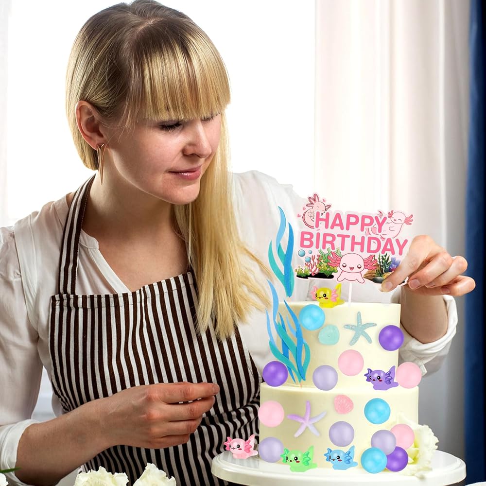 37 جهاز كمبيوتر شخصى axolotl كعكة توبر axolotl زينة عيد ميلاد تشمل 1 axolotl عيد ميلاد سعيد كعكة توبر 2 أكياس الأعشاب البحرية الاصطناعية 34 جهاز كمبيوتر شخصى لعبة السلمندر الكرة الزينة للأطفال الفتيات لوازم الحفلات