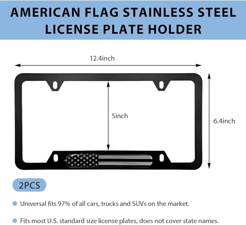 Universal Applicable: Measuring 12.4×6.4 inches, this car license plate is designed to fit most regular size license plates according to universal standards. It is not limited by the vehicle's brand or model, and it is applicable to front and rear license plates of cars, SUVs , trucks and more