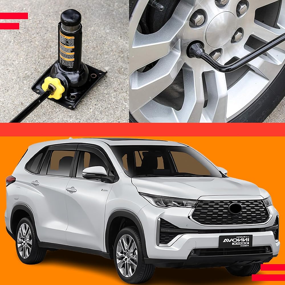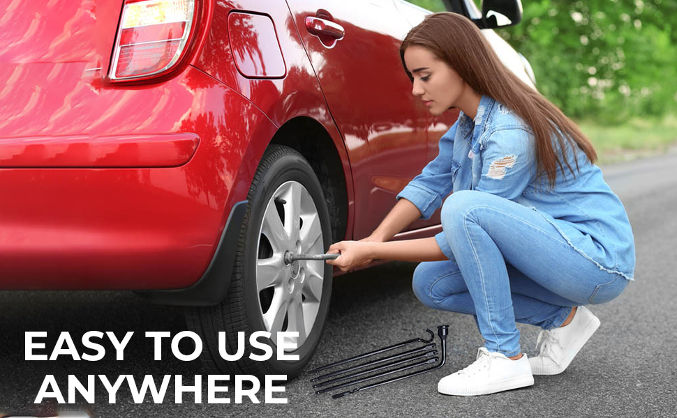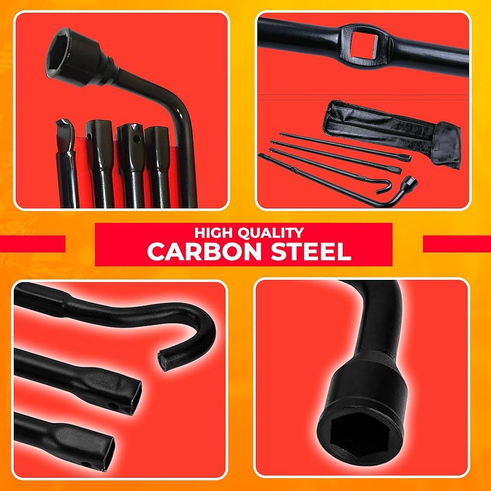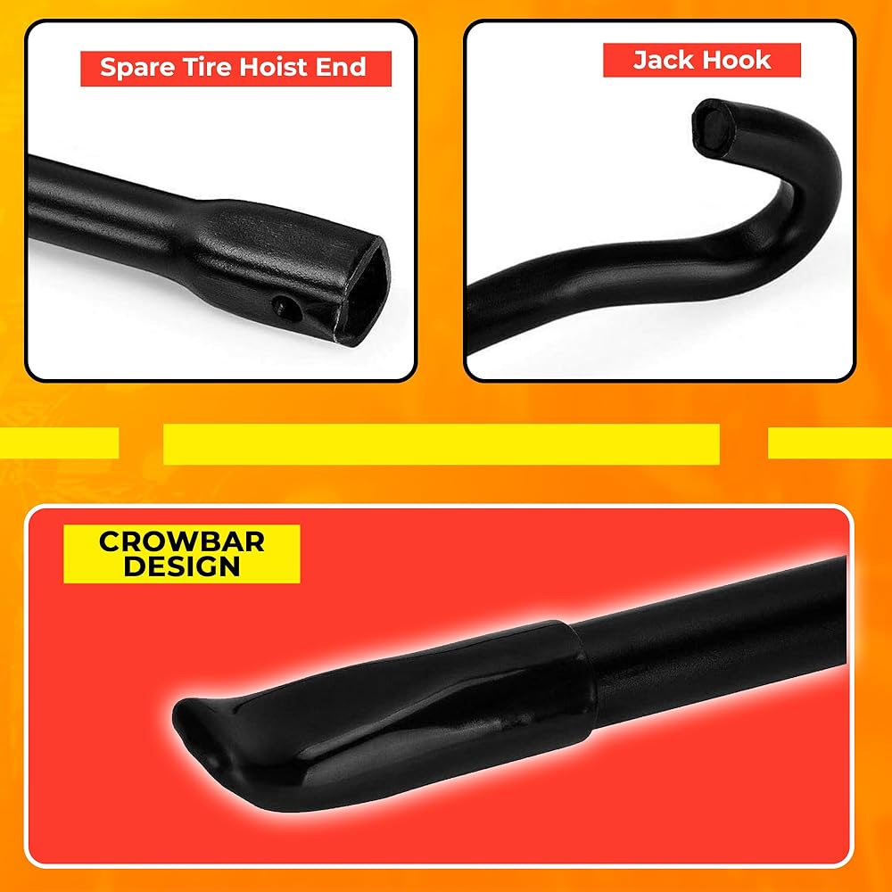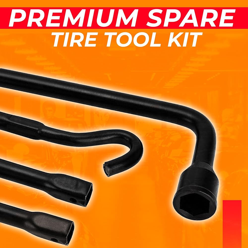 تصميم سهل الاستخدام لاستبدال الإطارات: تعمل هذه المجموعة متعددة الاستخدامات على تبسيط عملية إزالة الإطارات واستبدالها. استخدم أداة إزالة الإطارات الاحتياطية ومجموعة استبدال الإطارات لفك صواميل العروة وخفض الإطارات الاحتياطية وتشغيل الرافعات (المرفاع غير متضمن) دون عناء.