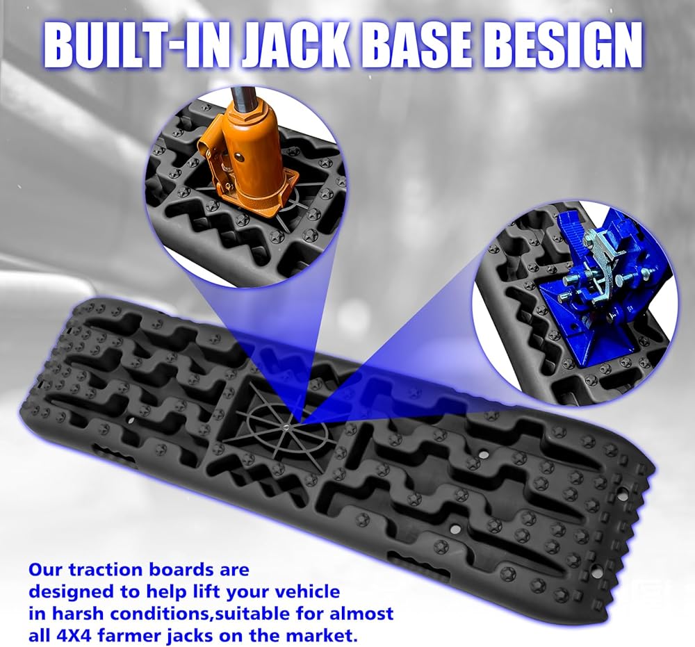 • 【قاعدة جاك مدمجة】: تم تصميم لوحات الاسترداد الخاصة بنا بقاعدة جاك فريدة موجودة في وسط لوحات الجر، وهي مناسبة لجميع مقابس المزارعين 4X4 تقريبًا في السوق، وهي مثالية لمختلف التضاريس مثل الرمل والطين والثلج والصخور وما إلى ذلك. بالإضافة إلى ذلك، يمكنها أيضًا رفع سيارتك إلى ارتفاعات جديدة في الظروف القاسية، وهي ملحقات يجب اقتناؤها على الطرق الوعرة لعشاق الطرق الوعرة.