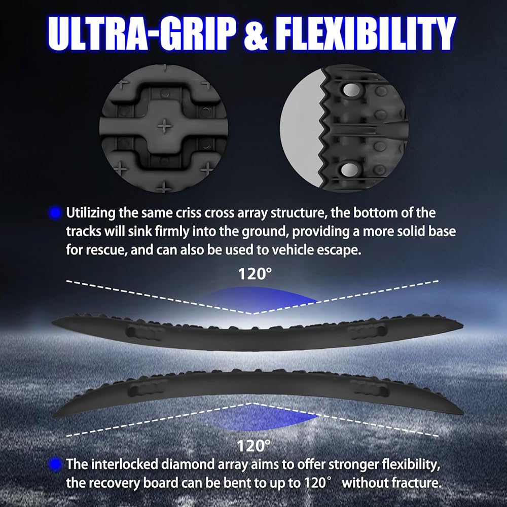 • 【آمنة وموثوقة】: مع الأخذ في الاعتبار درجات الحرارة القصوى التي سيواجهها المستخدمون، فإن ألواح الجر للطرق الوعرة لدينا قادرة على العمل طوال العام في درجات حرارة تتراوح بين -30 درجة مئوية (-22 درجة فهرنهايت) و60 درجة مئوية (140 درجة فهرنهايت). تم تصميم السطح بأسنان متقاطعة وأخاديد على شكل حرف U لضمان قدرته على الإمساك بالإطار بالكامل، ومنع السيارة من الانزلاق للخلف، وعدم التحرك بسبب الدوران الشديد للعجلات، مما يضمن مرونة ممتازة.