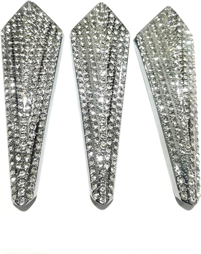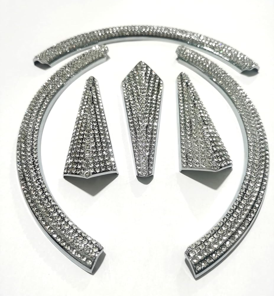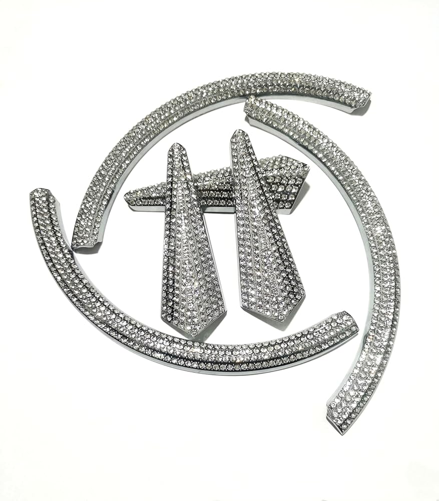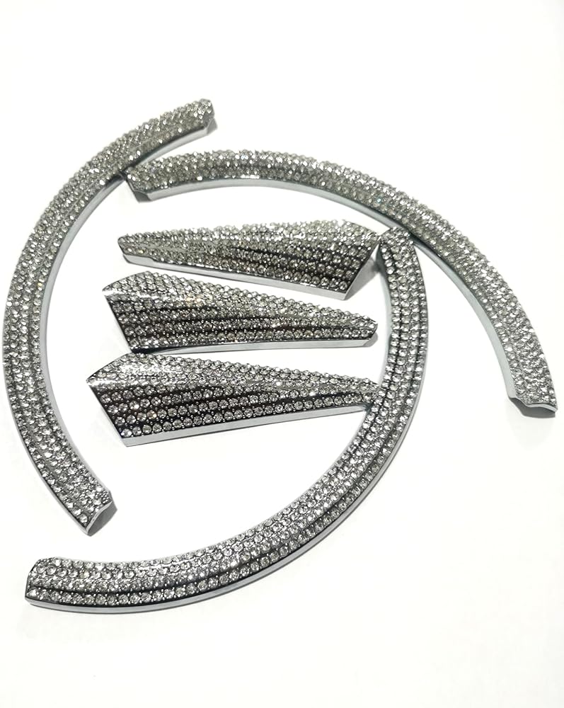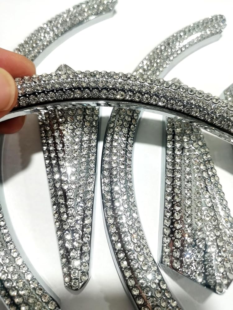 Custom-made to fit original vehicle emblem dimensions, featuring premium rhinestones embedded on a metal surface.