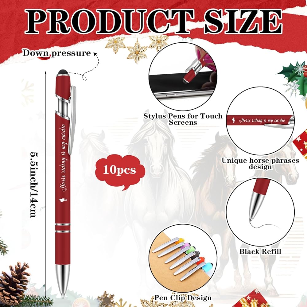Package Contents: you will receive 10 horse lover gift pens in 10 different designs, perfect for both personal use and gift giving; This set of horse pens is the perfect choice for everyday writing, office use, or as a thoughtful gift for equestrian enthusiasts, friends, colleagues, or family; Each horse ballpoint pen embodies a love for horses, making it equally special as a personal treasure or a thoughtful gift