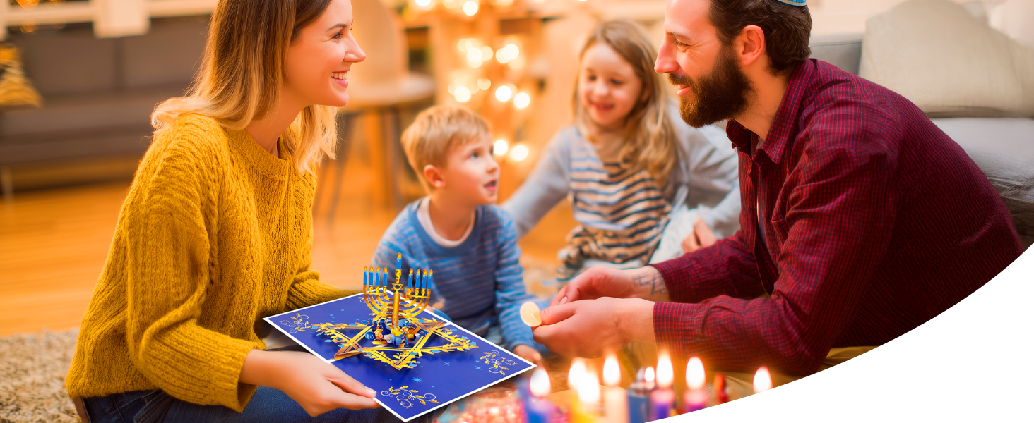 - 🎁 𝐏𝐞𝐫𝐟𝐞𝐜𝐭 𝐆𝐢𝐟𝐭 𝐅𝐨𝐫 𝐅𝐚𝐦𝐢𝐥𝐲 𝐚𝐧𝐝 𝐅𝐫𝐢𝐞𝐧𝐝𝐬 – بطاقة حانوكا فريدة يمكن استخدامها كديكور احتفالي أو تذكار. مثالية للأحباء والجيران وزملاء العمل أو كقطعة مركزية لاحتفالات عطلتك.