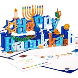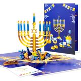 بطاقة تهنئة منبثقة ثلاثية الأبعاد لعيد هانوكا - مهرجان الأضواء مع الشموع والدريدل ورموز هانوكا التقليدية - بطاقة عطلة يهودية للعائلة والأصدقاء والأحباء، تتضمن مظروفًا وملاحظة فارغة