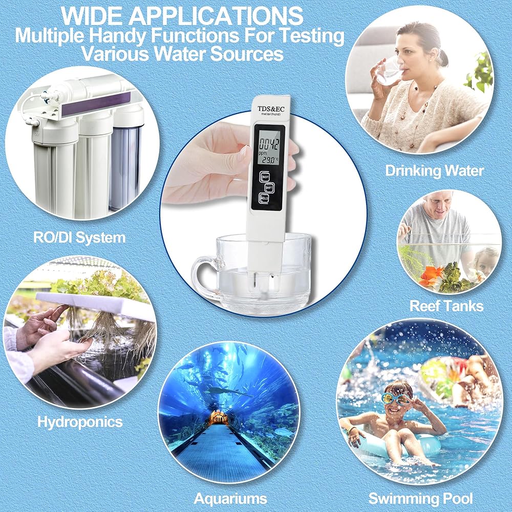 تطبيق واسع - باستخدام مقياس EC، يمكنك التحقق من TDS أو EC لمياه الشرب أو حوض السمك أو حمام السباحة أو أي مصدر للمياه. يمكنك تحديد مدى فعالية وحدة التناضح العكسي أو DI أو وحدة التقطير، والتحقق من مستويات العناصر الغذائية في نظام الزراعة المائية لديك، وما إلى ذلك.