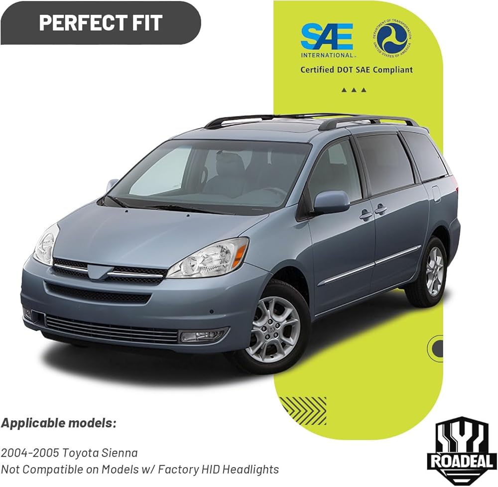 【تركيب مثالي للمعدات الأصلية】OEM#81110AE010، 81150AE010.Partslink#TO2503150، TO2502150. مجموعة المصابيح الأمامية 100% إعداد مثالي لنوع OE 2004-2005 Toyota Sienna CE, LE, XLE, XLE Limited غير متوافق مع الموديلات التي تحتوي على مصابيح أمامية HID في المصنع؛ شعاع منخفض/عالي: H4/HB3 (المصابيح متضمنة)، ضوء إشارة الانعطاف: 3157NA (المصابيح غير متضمنة)؛ باعتبارنا شركة مصنعة حاصلة على شهادة ISO، فإننا نقدم فقط منتجات عالية الجودة حاصلة على شهادات DOT وSAE.