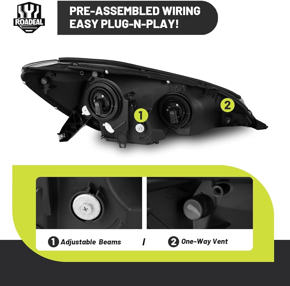 【تركيب بسيط】تم تصميم مجموعة المصابيح الأمامية لتحل محل مجموعات المخزون بأسلوب Plug-n-Play؛ لا يلزم الحفر.