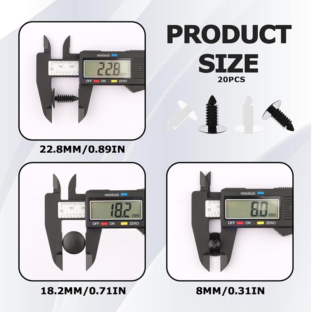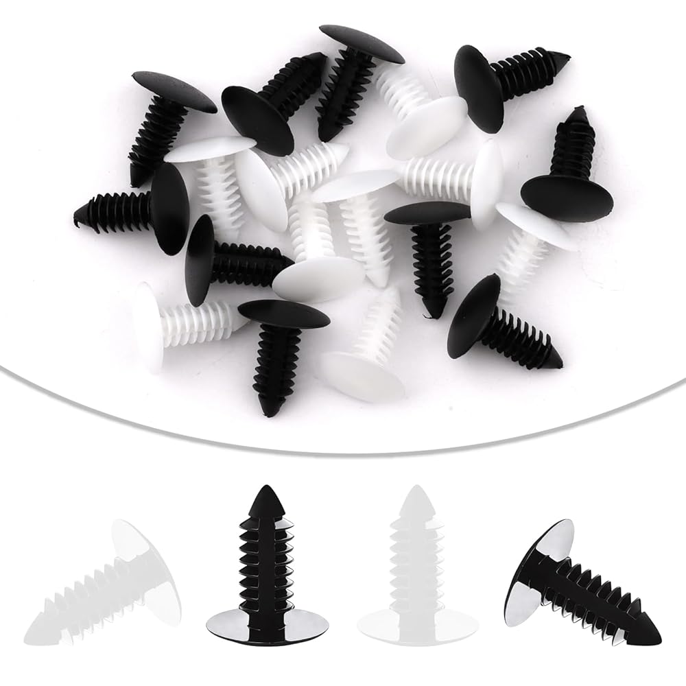 Feature: 20 pcs License Plate Hole Plugs - Universal 8mm Car Bumper Plugs for Car, Truck, SUV - White & Black Plastic Push Pin Retainer Clips Cover Rivet Holes, Fender Liner Shield Automotive Accessories