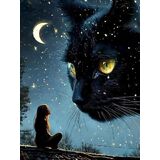 1.You can paste the corresponding diamonds according to the numbers on the canvas to create a very beautiful and artistic Black Cat Moon 5D diamond painting for adults.