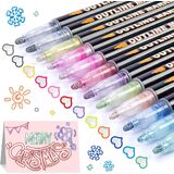 علامات الخطوط العريضة كهدايا عيد الميلاد للمراهقات والفتيات المراهقات، قلم تحديد لامع معدني لامع، 12 قلم رائع لرسم الخربشة، لوازم الحرف الفنية العصرية اللطيفة ومواد تخزين للفتيات المراهقات