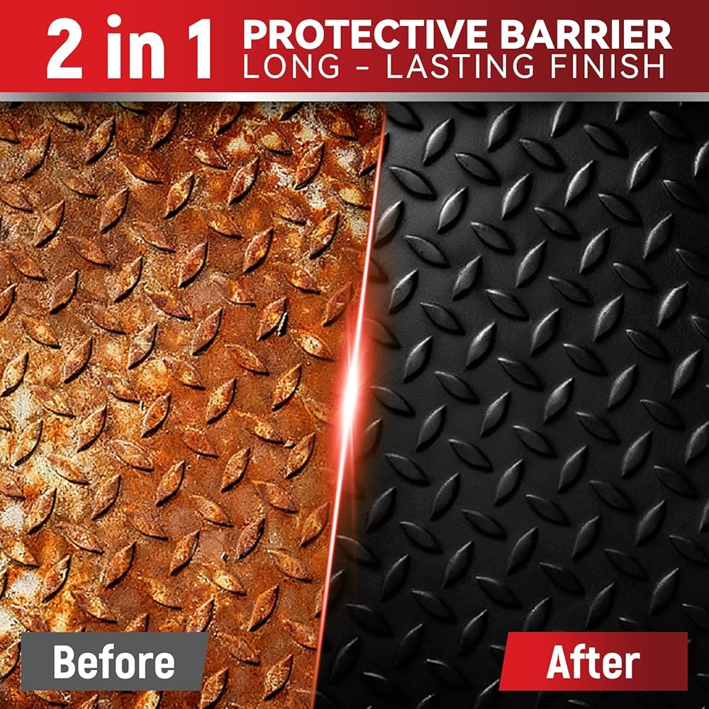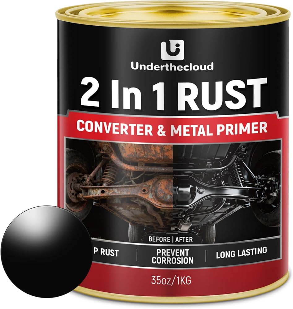 محول الصدأ 2 في 1 وطلاء معدني تمهيدي، (35 أونصة) مصلح الصدأ فائق الثبات للحرارة وطلاء مغلف للصدأ للسيارة والمقطورة وإطار الشاحنة والهيكل والمورت وحماية طويلة الأمد ضد الصدأ، يوقف ويزيل التآكل بشكل دائم، أسود غير لامع