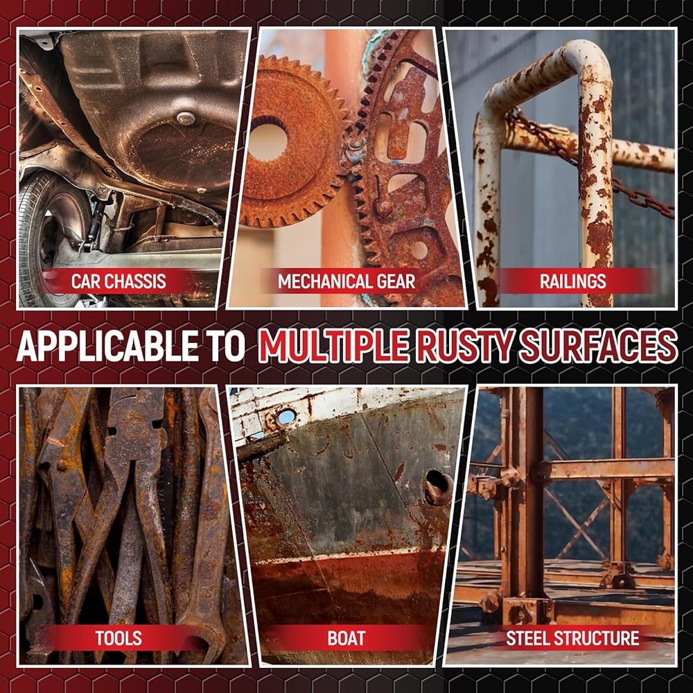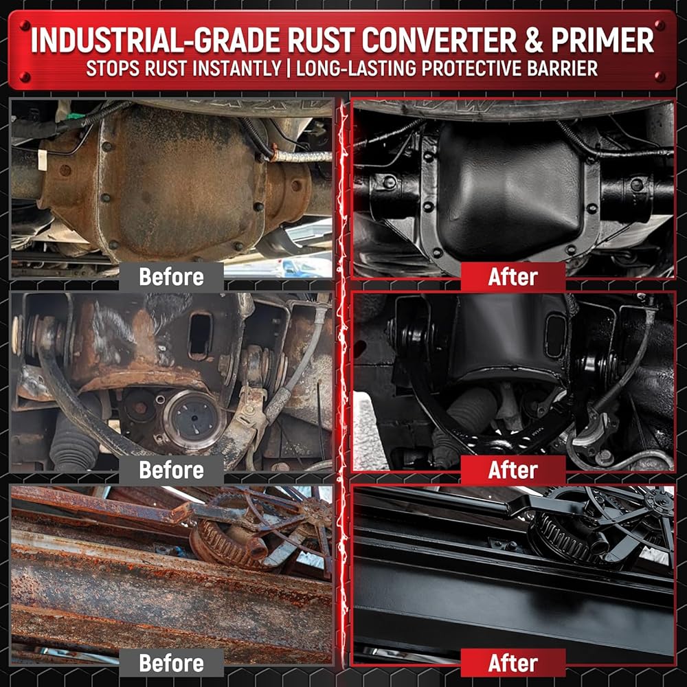 • مصلح ومثبط الصدأ الكل في واحد - لكل سطح معدني: يستخدم على الفولاذ والحديد والألمنيوم والمعادن الأخرى، تستخدم جميع صناعات السيارات والمزارع والصناعات البحرية والتجارية والبناء طلاءًا وقائيًا من الصدأ تحت السحابة لحماية المعدات الثمينة من الصدأ والتآكل والتآكل. يتميز الطلاء الخاص بنا بتحمل ممتاز للسطح على الأسطح المسامية، مثل الخشب والألياف الزجاجية والخرسانة والطوب وأكثر من ذلك! كما أنه مقاوم للحرارة حتى 350 درجة فهرنهايت و يمكن استخدامها بأمان في حجرة المحرك أو بالقرب من الفرامل