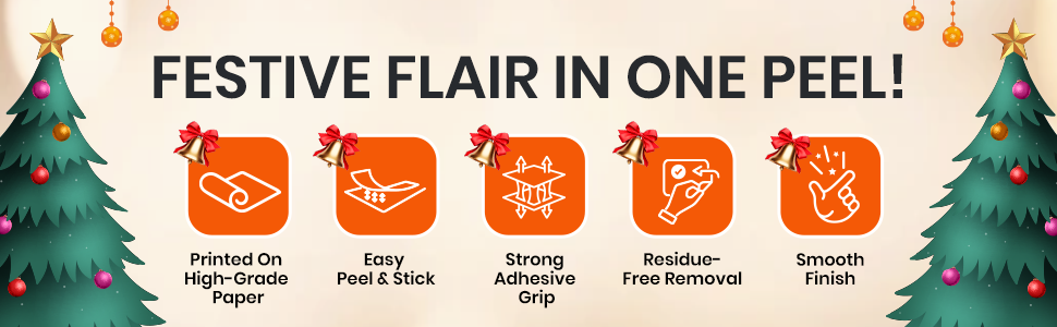 سهل الاستخدام واللصق - انزع والصقه مباشرة على صناديق الهدايا أو صناديق الكعك أو عبوات العطلات أو البطاقات أو الحرف اليدوية بدون فوضى؛ مثالية للمعلمين ومفضلات حفلات عيد الميلاد.
