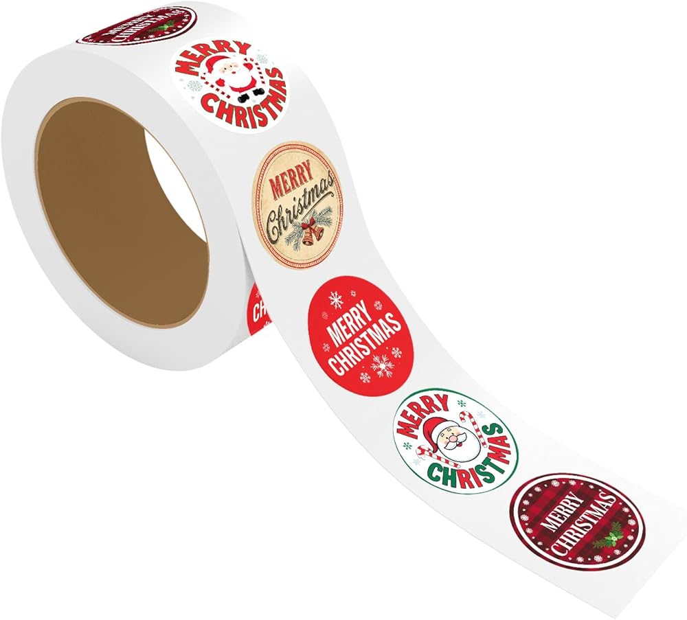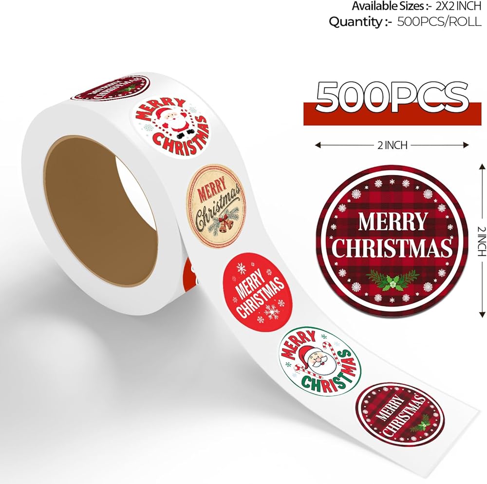 ملصقات عيد الميلاد من ستيكر جيت مقاس 2 × 2 بوصة، 500 قطعة من الملصقات الدائرية ذاتية اللصق لهدايا عيد الميلاد والحرف اليدوية والأظرف - ديكورات حفلات العطلات (5 تصميمات متنوعة) الطراز 1