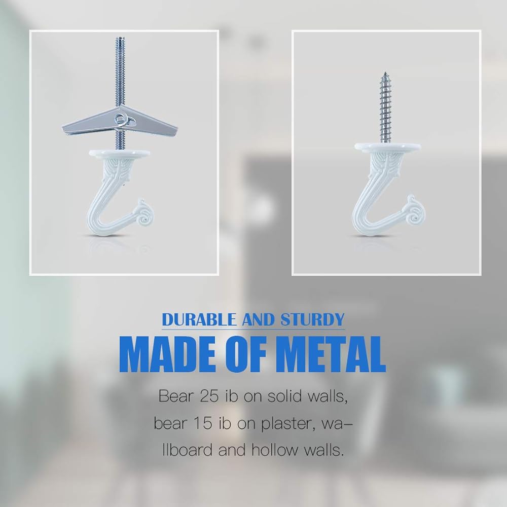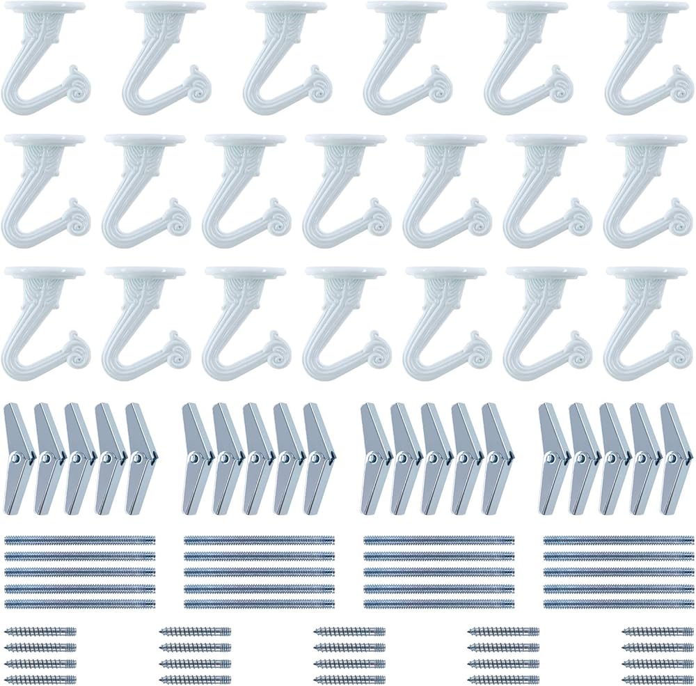 خطاف سقف غلاركس 20 مجموعة/80 قطعة مقاس 1 انش شديد التحمل مع براغي فولاذية وأجنحة تبديل لتعليق النباتات وتركيب السقف وتثبيت التجويف على الحائط، لمسة نهائية من المينا البيضاء