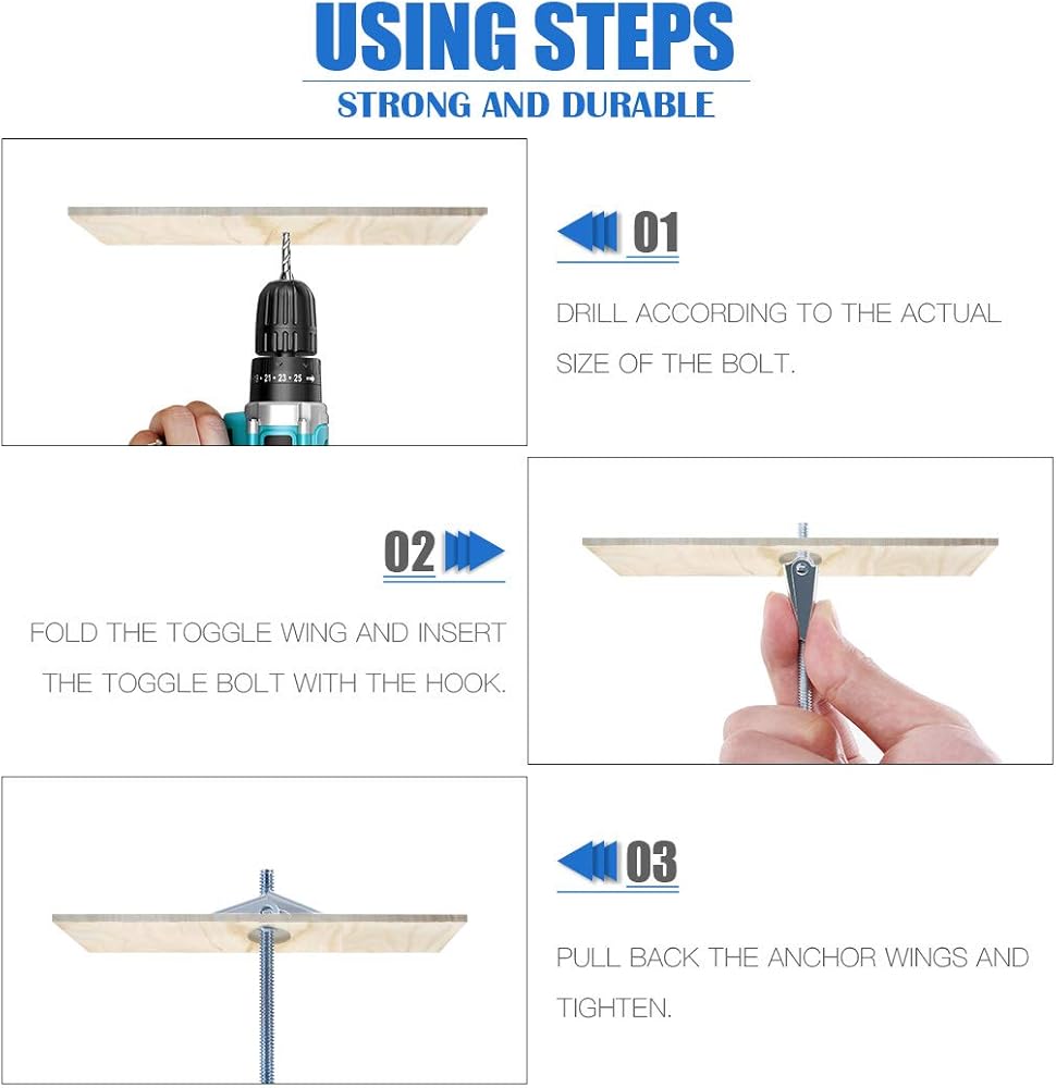 ✿ جدار أو سقف مجوف: قم بالحفر وفقًا للحجم الفعلي للبراغي، وقم بطي جناح التبديل وأدخل مسمار التبديل باستخدام الخطاف. اسحب أجنحة التثبيت للخلف وشدها.