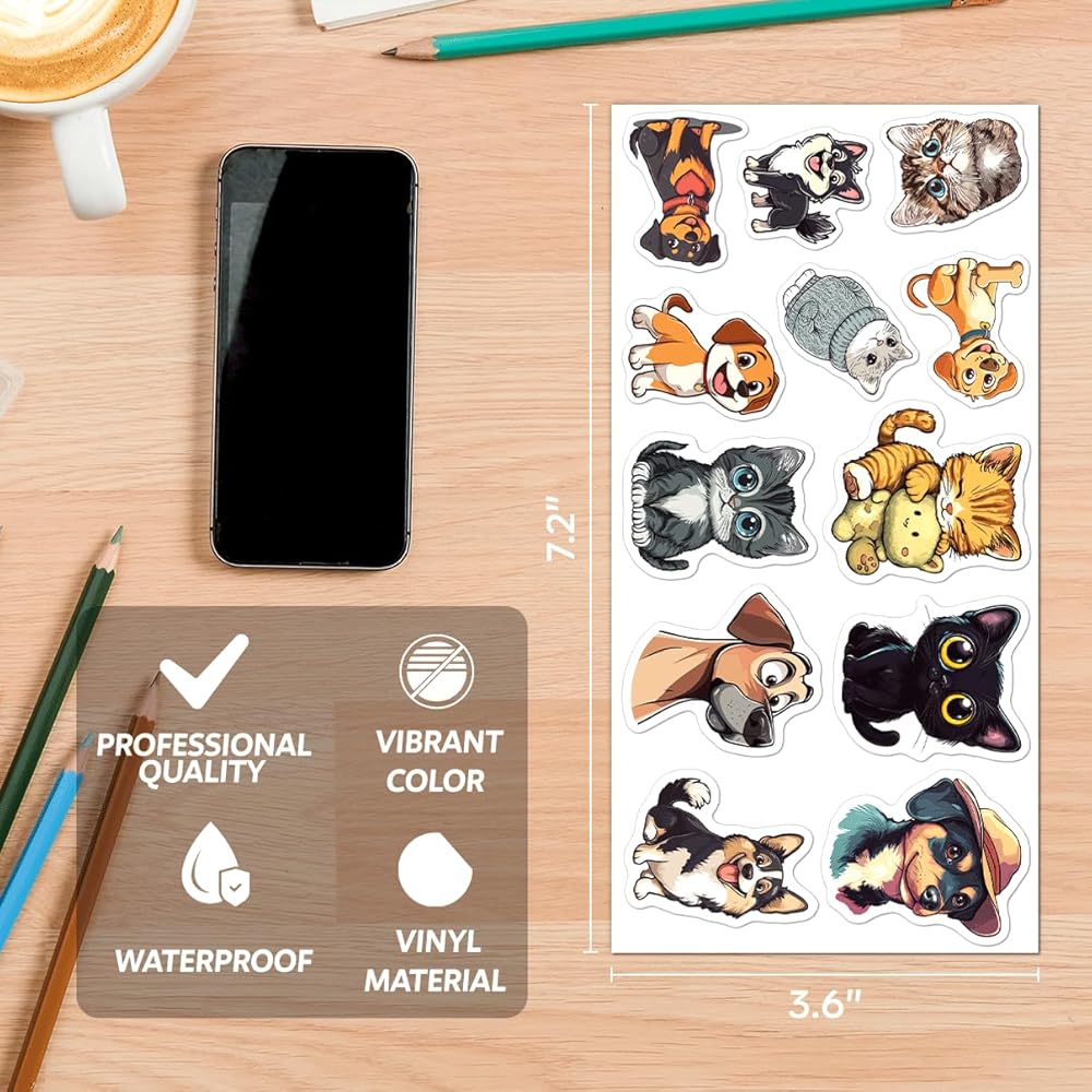 Premium Vinyl Durability: Made from vinyl, these stickers are waterproof, easy to peel, and leave no sticky residue, ensuring long lasting use on your favorite everyday items