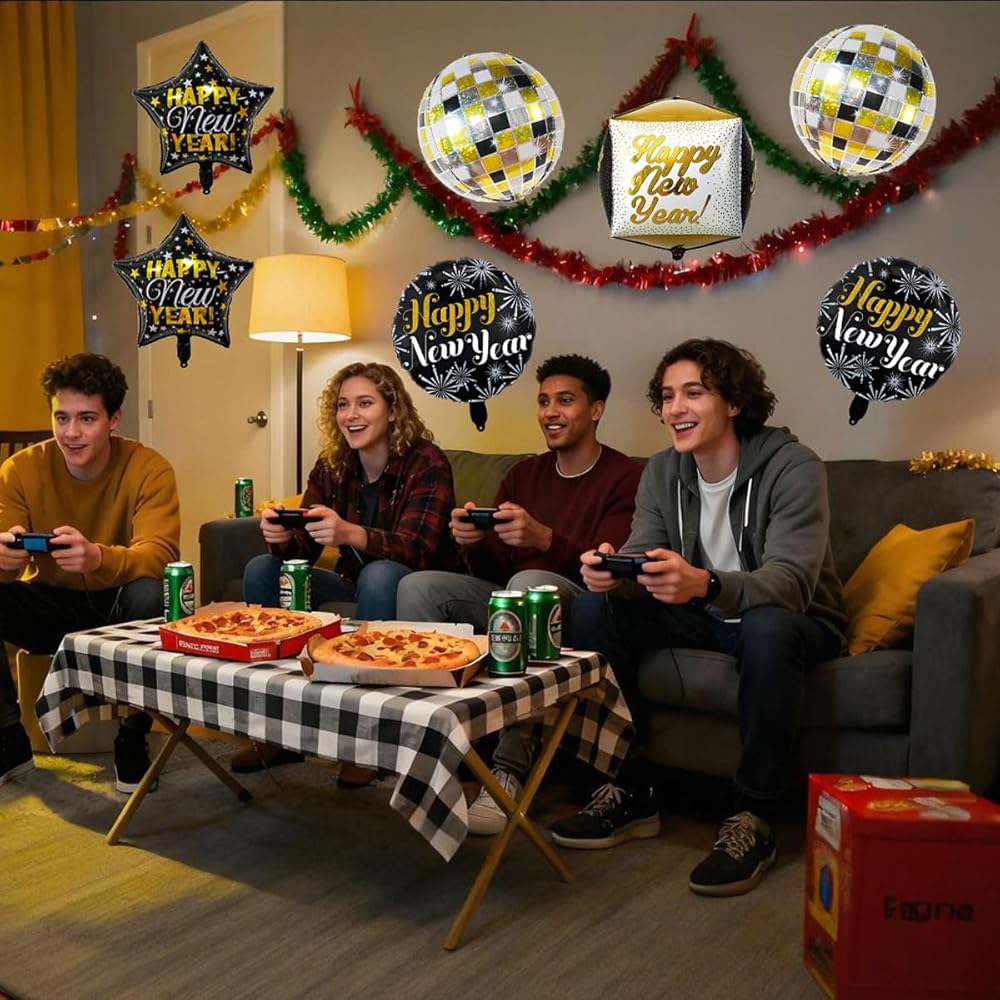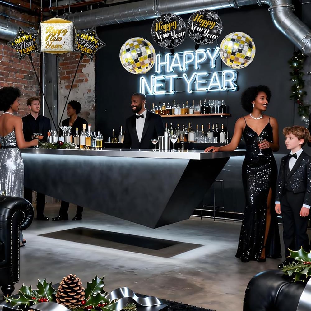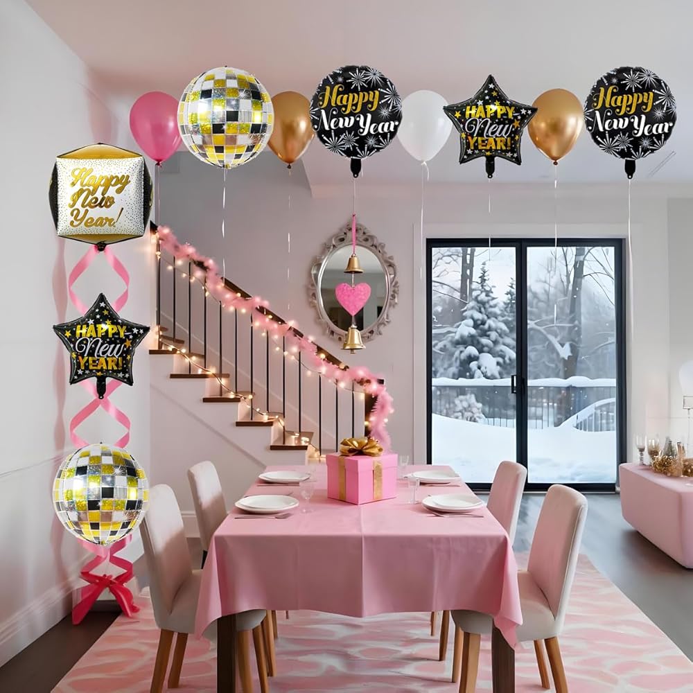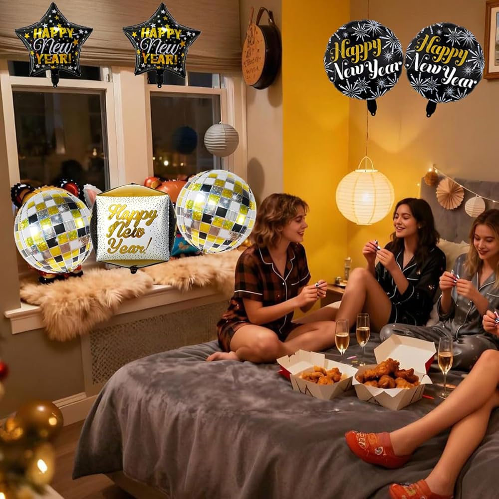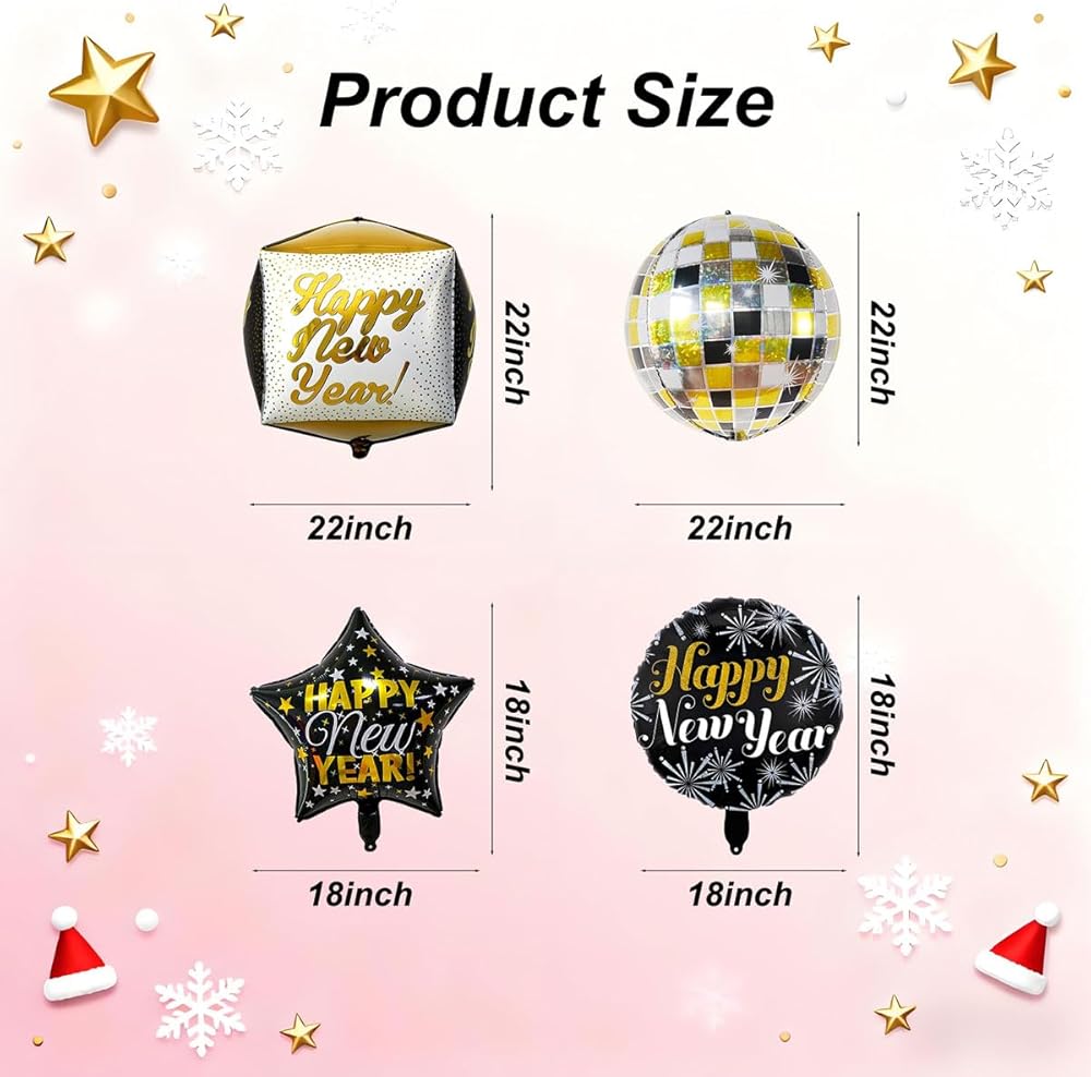 Package Includes: This new year balloons set is a perfect choice for new years decorations, including 2 pcs "Happy New Year" star balloons, 2 pcs "Happy New Year" round balloons, 2 pcs 4D laser disco balloons, and 1 pcs 4D "Happy New Year" balloon. It provides all essential new years balloon new years needs to kick off your celebration, serving as perfect happy new year decorations.