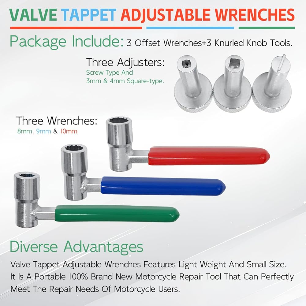 2218 أداة ضبط غماز صمام المحرك الصغير مجموعة من 6 قطع، مفاتيح ربط قابلة للتعديل لتخليص الصمامات تناسب الدراجات النارية ATV's ATC مع أدوات ضبط الغماز من النوع اللولبي