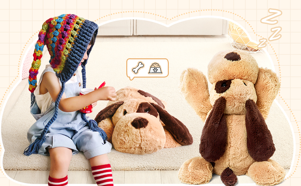 يبلغ مقاس قطيفة الكلاب الخاصة بنا 76.2 سم، مما يجعلها الحجم المثالي لكل من البالغين والأطفال. سواء كنت تبحث عن رفيق محبوب للنوم معه أو وسادة مريحة للجسم، فإن هذا الجرو القطيفة هو الخيار الأمثل.