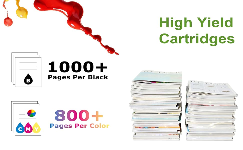 • إنتاجية عالية للصفحات: يمكن لخرطوشة الحبر الأسود 923e طباعة ما يصل إلى 1000 صفحة، ويمكن لخراطيش الحبر الملونة 923e طباعة 800 صفحة لتلبية احتياجات الطباعة عالية التردد. (على أساس معدل تغطية 5%).