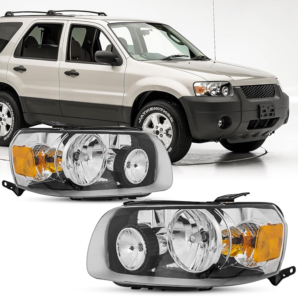 مجموعة المصابيح الأمامية المتوافقة مع مجموعة مصابيح أمامية بديلة لسيارة Ford Escape 2005 2006 2007 Hybrid Limited XLS XLT,FO2518102, FO2519102