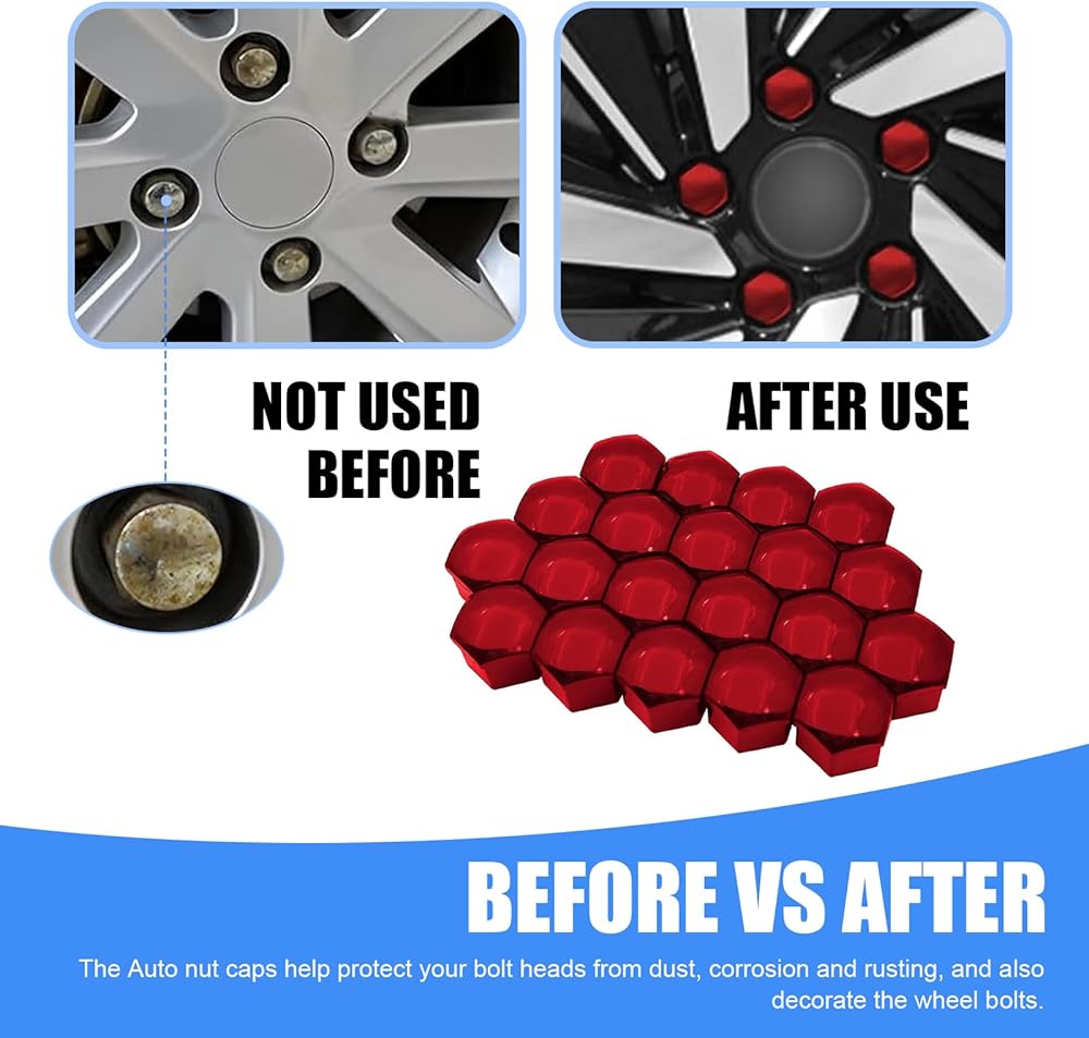Protection & Styling: This wheel nut protector effectively shields wheel bolts from rust, scratches, paint damage and dust. It also adds color to your wheels, giving your car a new look and showing your personality.