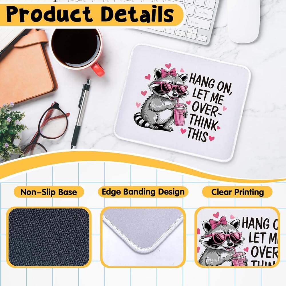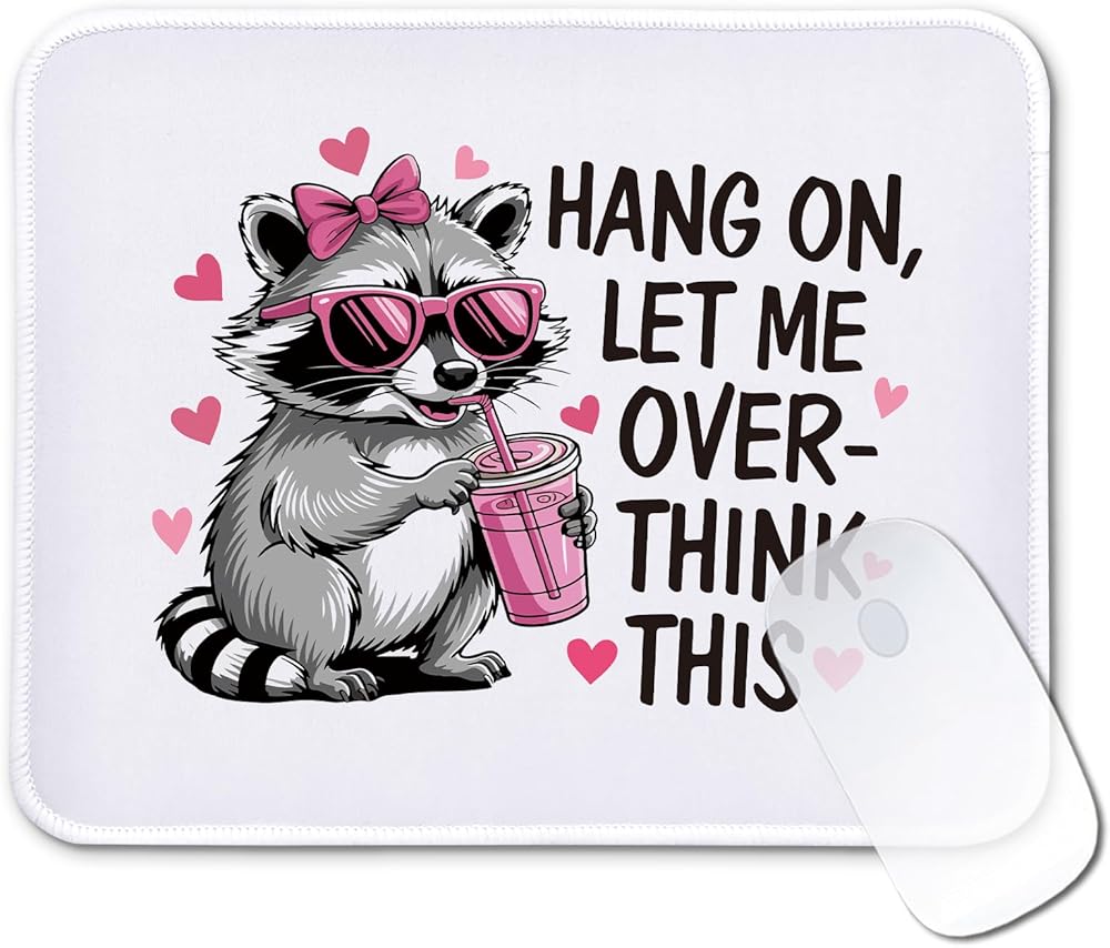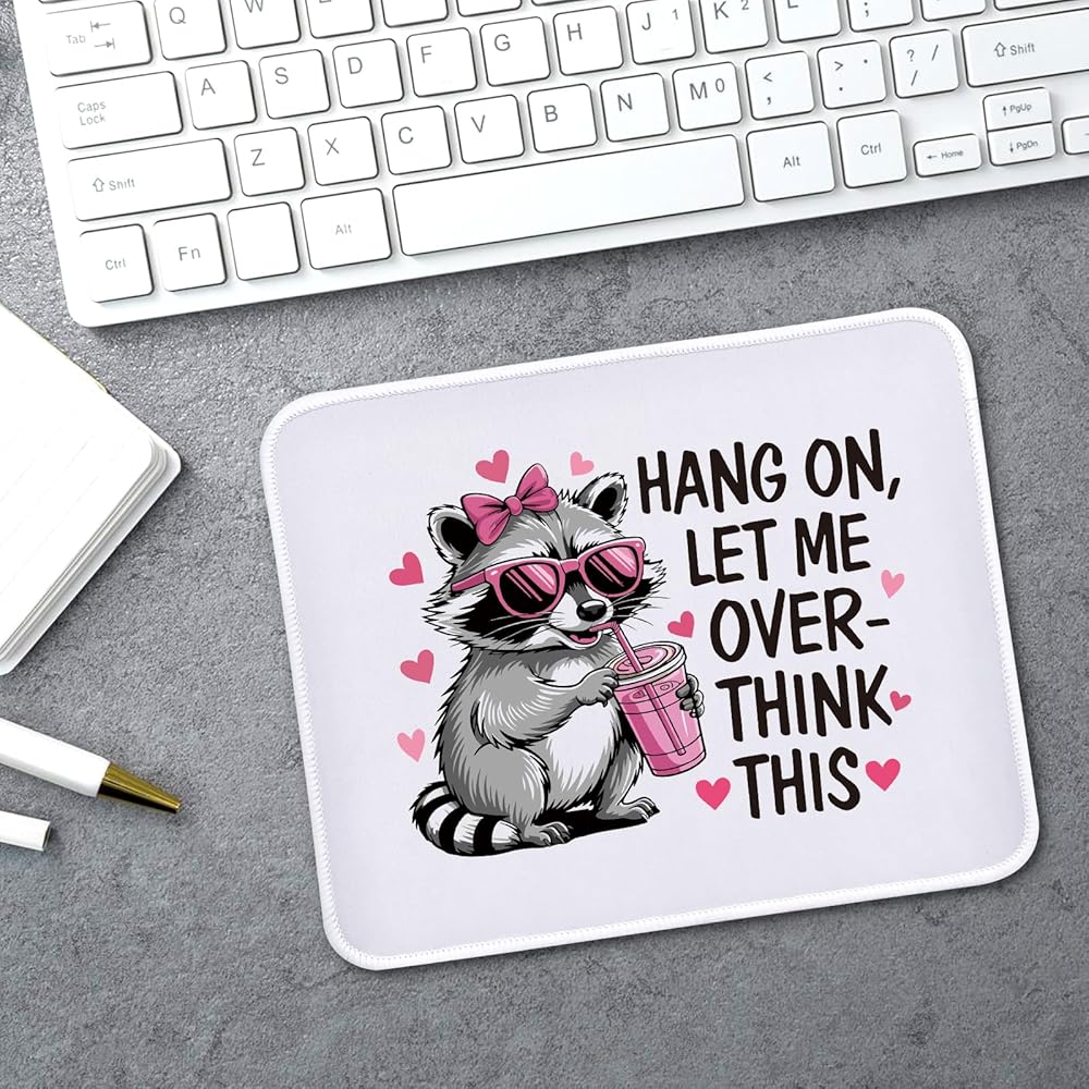 هدايا لوحة ماوس راكون مضحكة - دعني أفكر في هذا - لوحة ماوس غير قابلة للانزلاق مع حافة مخيطة - حصيرة ماوس مستطيلة لألعاب الكمبيوتر المحمول - هدايا ساخرة للزملاء والرئيس والصديق