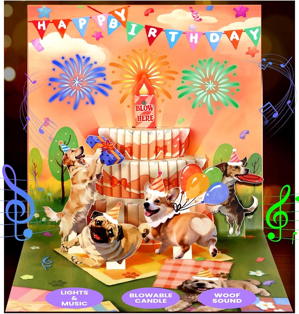أغنية عيد ميلاد "Woof" المبهجة: عند فتحها، تقوم البطاقة بتشغيل نسخة "Woof" غريبة الأطوار من أغنية عيد ميلاد سعيد، مما يضمن جلب الابتسامات والضحك للاحتفال. هذا التطور المرح على النغمة الكلاسيكية يجعلها هدية مميزة للأطفال والكبار على حد سواء