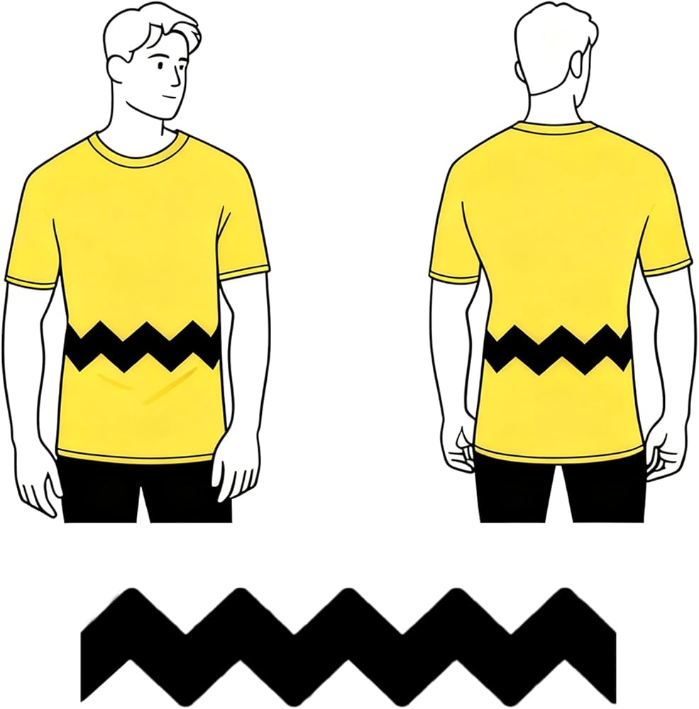 Unlock Classic Comic Style! Bring poor Charlie's iconic zig-zag shirt stripe to life with our premium iron-on transfer! Perfect for DIY costumes, nostalgic tees, or unique gifts, this authentic brown vinyl decal instantly transforms any garment into a tribute to everyone's favorite underdog. Choose from four tailored sizes for flawless fits – from tiny tots to big kids and adults. Made from durable, fade-resistant vinyl, it's a breeze to apply with any home iron. No sewing needed! Whether you're crafting a Halloween costume, birthday party gear, or just celebrating comic strip history, this zig-zag stripe is your ticket to instant Peanuts charm. Works On: T-shirts, hoodies, bags, hats & cotton blends Perfect For: Halloween, comic cons, gift-giving, Charlie fans!