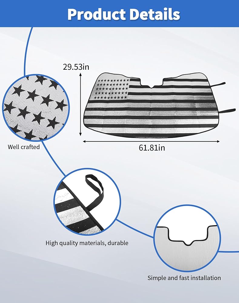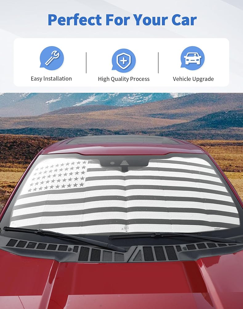 --DSWSQ Windshield sun shade keeps your truck interior from UV Damage! With the sunshade snugly against the glass, UV rays cannot get around.