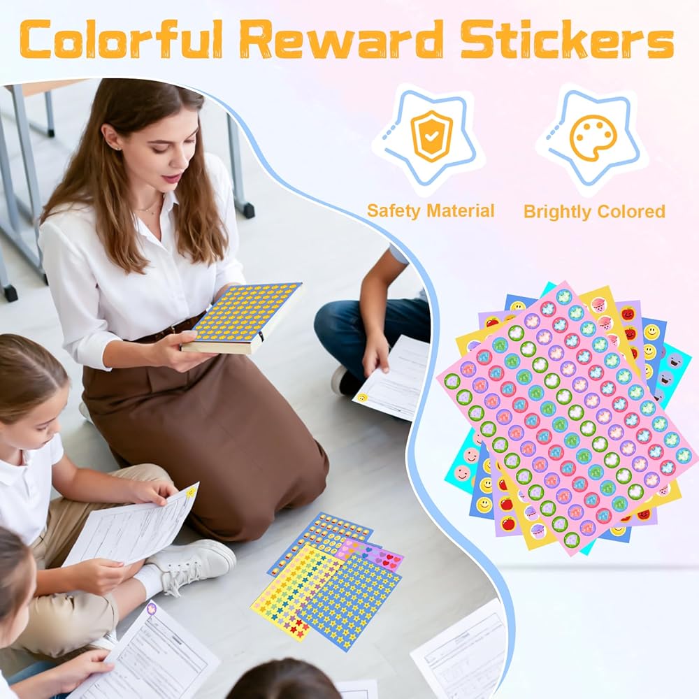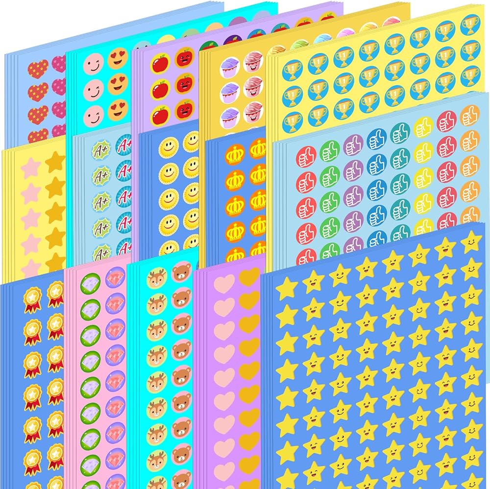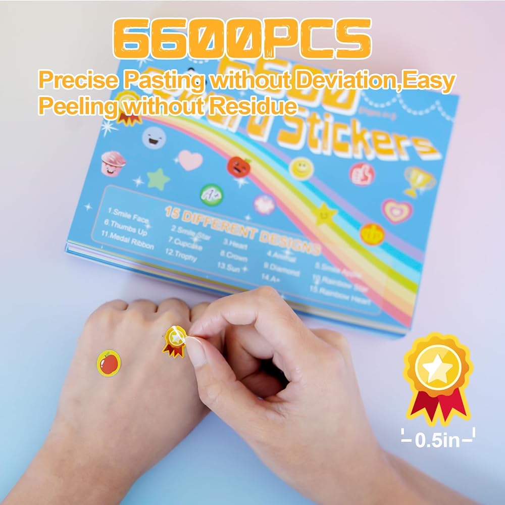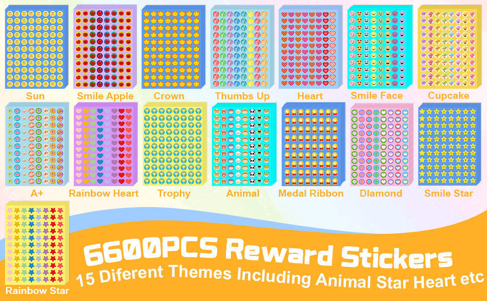 【مجموعة ملصقات مكافآت متعددة المواضيع】تتضمن هذه المجموعة المتنوعة 6600 قطعة من الملصقات مقاس 0.5 بوصة، تجمع بين 15 موضوعًا تتراوح من الحيوانات اللطيفة والميداليات اللامعة إلى الوجوه والقلوب المبتسمة الكلاسيكية وما إلى ذلك. توفر لك جميع الأوراق الـ 75 احتياطيًا مستمرًا من المكافآت، مما يجعل الأطفال يتوقعون إكمال المهام والحصول على مكافآت جديدة.