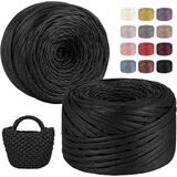 الحجم: سوف تحصل على 2 لفة من خيوط تي شيرت 200 جرام، بطول 2 × 98 ياردة (2 × 90 م)، وعرض 1.7 سم عند فردها، لخطاف الكروشيه 5 مم - 6 مم.
