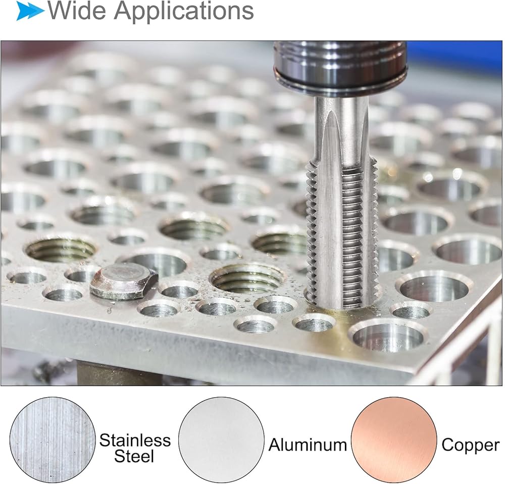 ★ Wide Application --- For threading through holes or shallow blind holes. 3 straight flutes design, rapid downward chip removal. Make new female threads or re-thread damaged female threads in stainless steel, ordinary steel, copper, aluminum, iron, alloy steel, plastic.