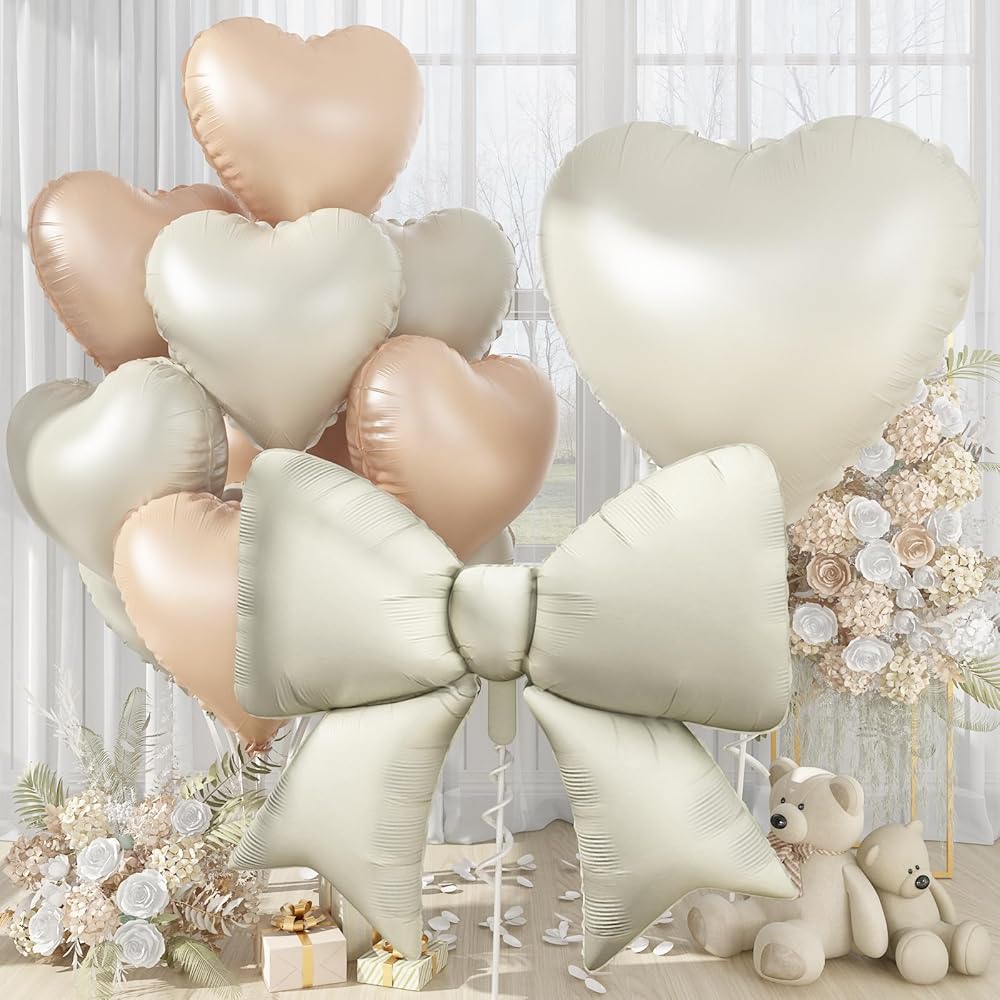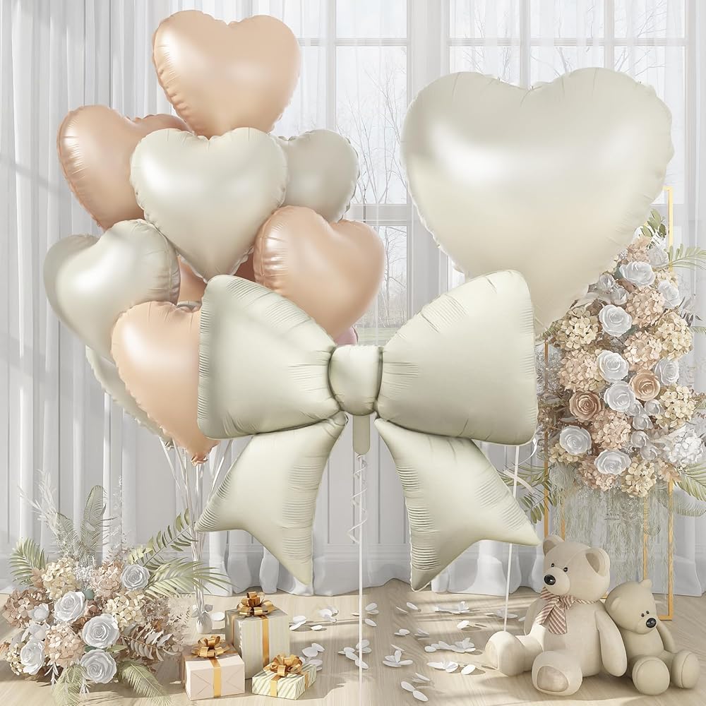 Add elegance and romance to your party with the KYGNE foil balloon set. This mix of bow and heart balloons features vibrant colors and layered arrangements. Perfect for birthdays, weddings, bridal showers, anniversaries, and celebrations, it instantly brightens your space and makes every photo shine.