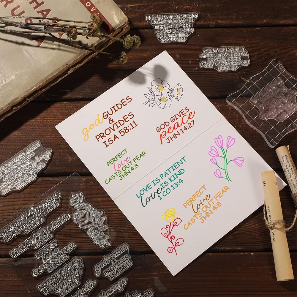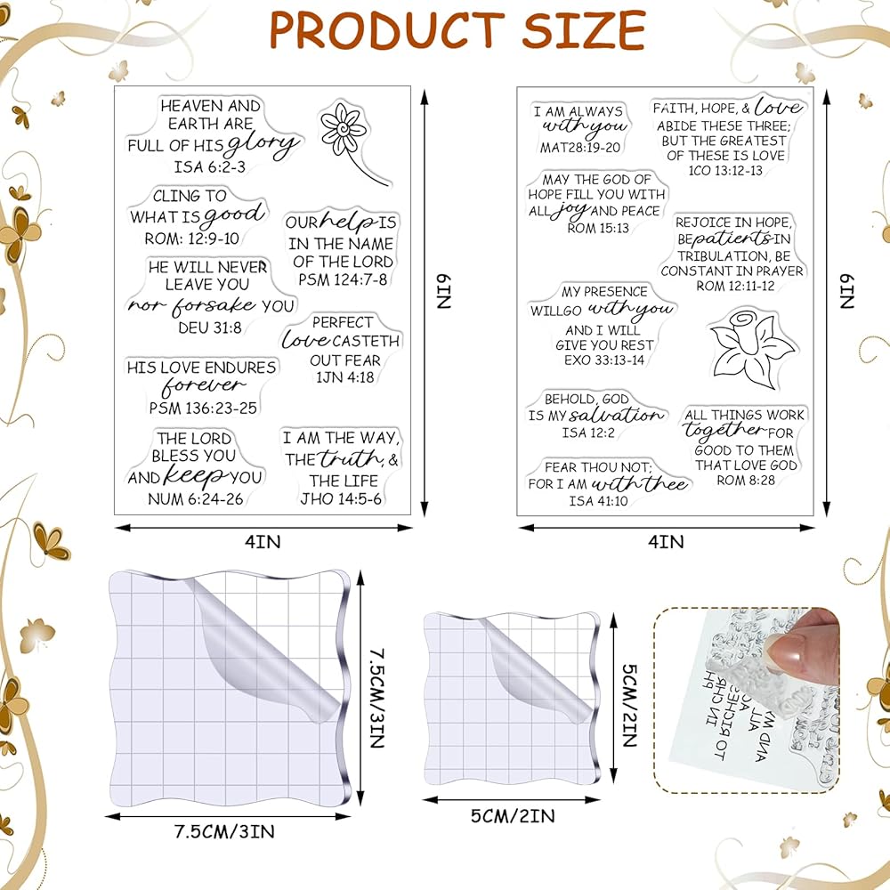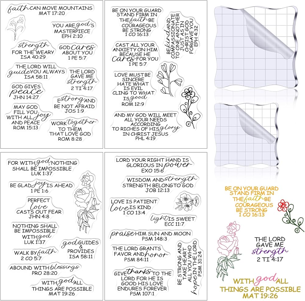 4 أوراق طوابع شفافة لصياغة طوابع آية الكتاب المقدس مجموعة صناعة الأكريليك ختم سكرابوكينغ المسيحي المطاط قطعتين أدوات كتل مع خطوط شبكية لصنع سجل القصاصات بنفسك (نمط أنيق)
