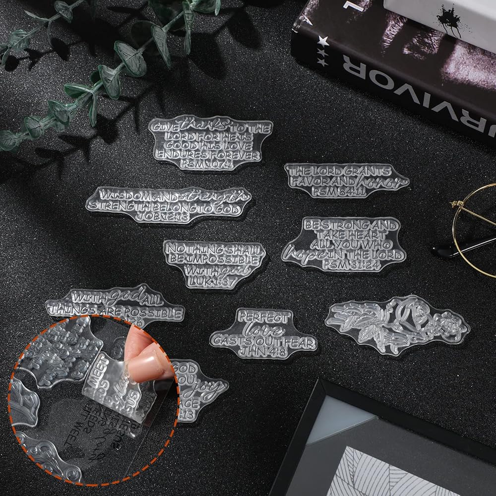 تصميم جملة ملهمة: تأتي هذه الطوابع الدينية مع جمل متنوعة ملهمة من الكتاب المقدس، وبعض أنماط النباتات النابضة بالحياة، متاحة لتشجيعك عندما تشعر بالإحباط، مما يوفر لك الكثير من الخيارات عند قيامك بمشروعات DIY، يمكنك استخدامها بمرونة وفقًا لطلباتك