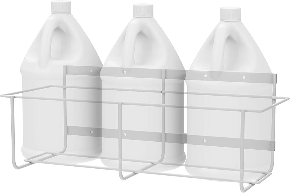 حامل إبريق مثبت على الحائط c2M متضمن مع أجهزة حامل إبريق سعة 3 جالون | إطار ودعامة فولاذية شديدة التحمل مصنوعة في الولايات المتحدة الأمريكية | رف تخزين لليدين والصابون والمنظفات والجراج بزجاجة مستديرة | مسحوق المغلفة الأبيض