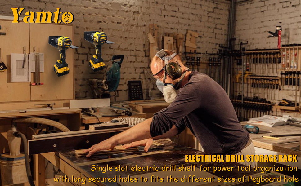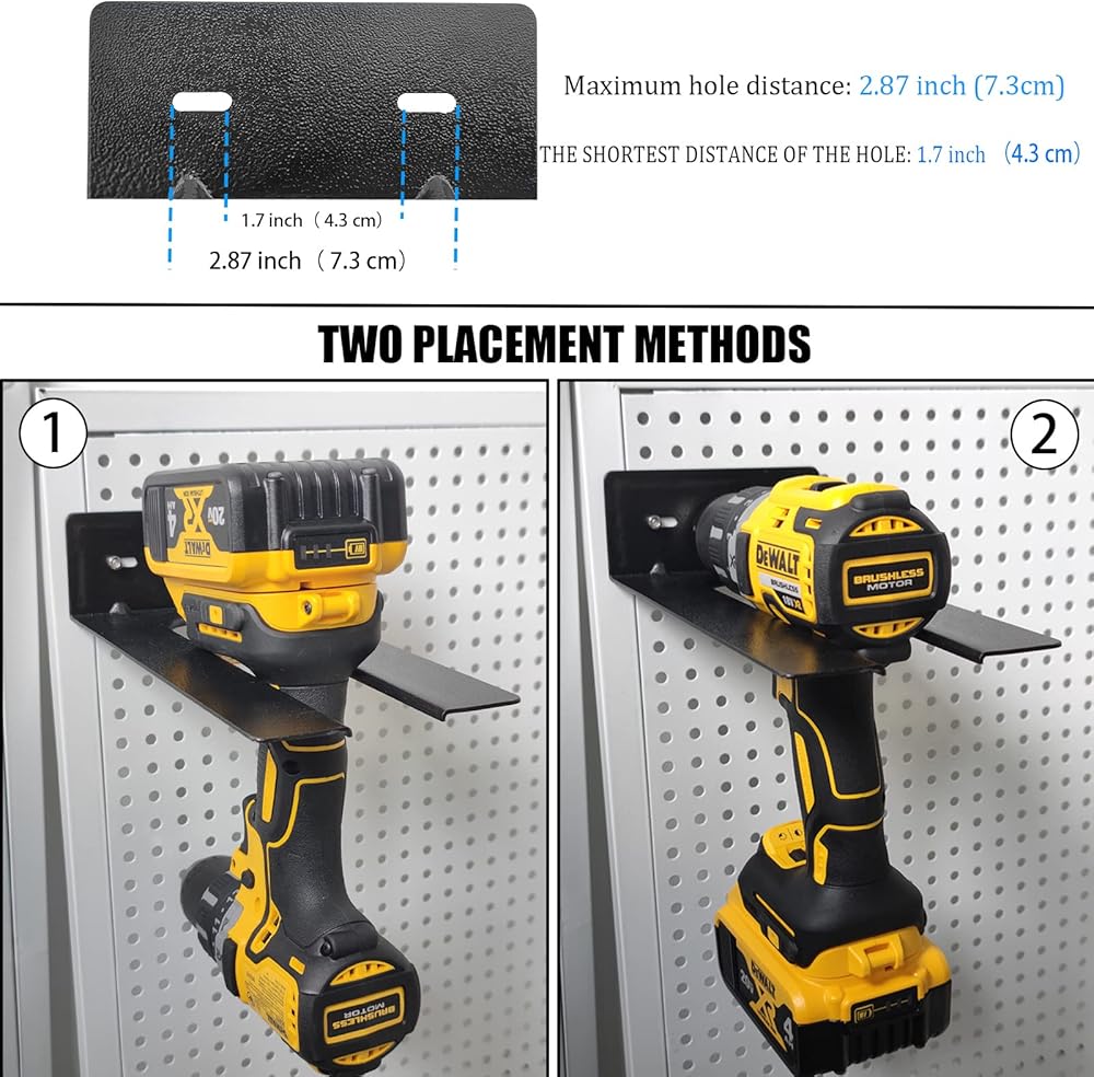 رف تخزين المثقاب الكهربائي: رف مثقاب كهربائي بفتحة واحدة لتنظيم أدوات الطاقة مع فتحات طويلة آمنة لتناسب الأحجام المختلفة لفتحة Pegboard، ويحمل ما يصل إلى 2 مثقاب طاقة كهربائي، ويوفر التصميم المثبت على الحائط تنظيمًا سهلاً لمثاقب الطاقة الخاصة بك