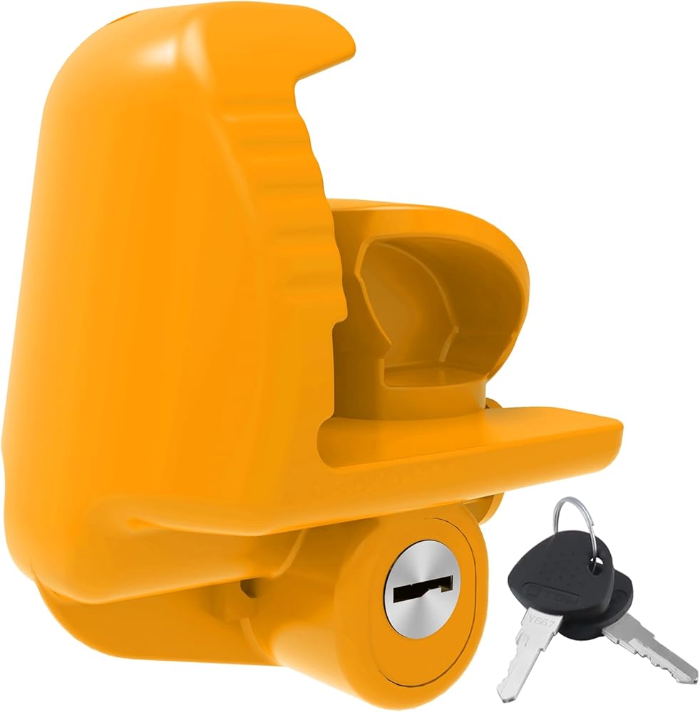 High Quality Material - The universal yellow boat trailer hitch lock is made of heavy-duty steel and superior quality aluminum which makes it difficult for thieves to break. And The trailer couple lock can effectively prevent rust and corrosion suitable for extreme weather, greatly extending its service life and effectively prevent prying