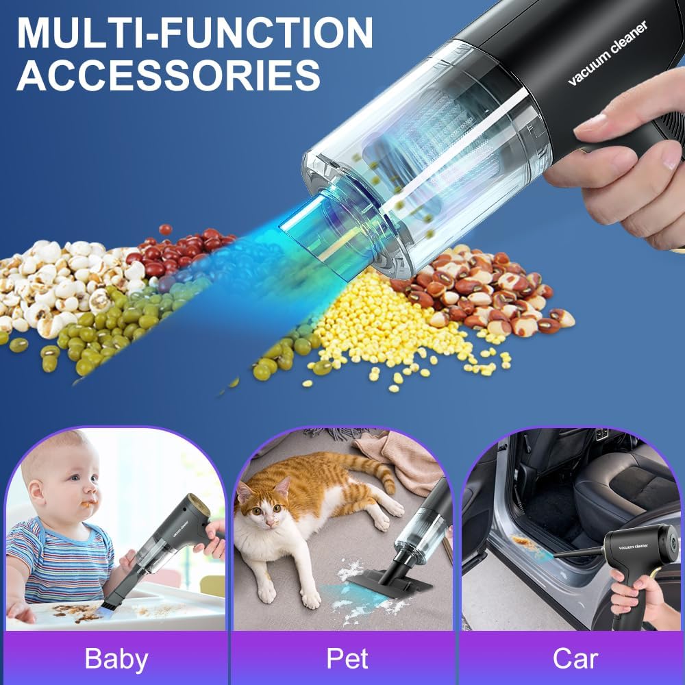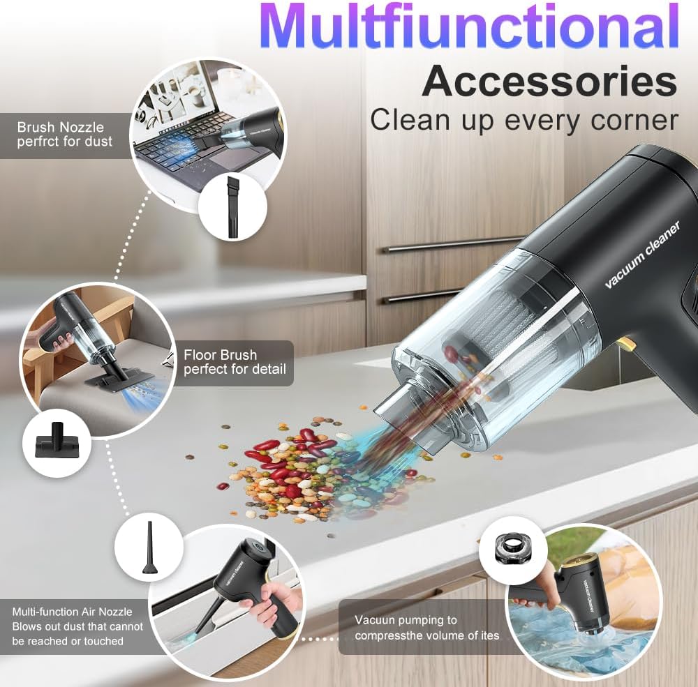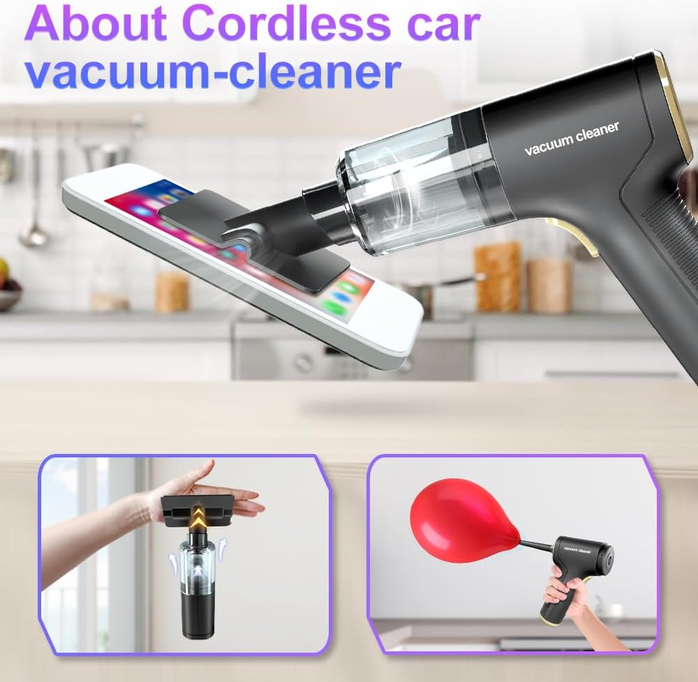 【مكنسة كهربائية ومنفضة هواء 3 في 1】: مكنسة كهربائية صغيرة بالإضافة إلى تقنية 3 في 1 المتقدمة في النفخ والشفط. يمكنها تلبية النفخ والمكنسة الكهربائية والضخ لمجموعة متنوعة من سيناريوهات الاستخدام. تحل مشكلة التنظيف الخاصة بك للغبار والحطام والرمل وشعر الحيوانات الأليفة وبعض الحطام الذي يصعب تنظيفه في السيارة أو المنزل. المكنسة الكهربائية اللاسلكية مجهزة بفلتر قابل للاستبدال. فلتر هيبا قابل للغسل. كوب كبير لجمع الغبار بزر واحد قابل للفك، مريح للتنظيف.