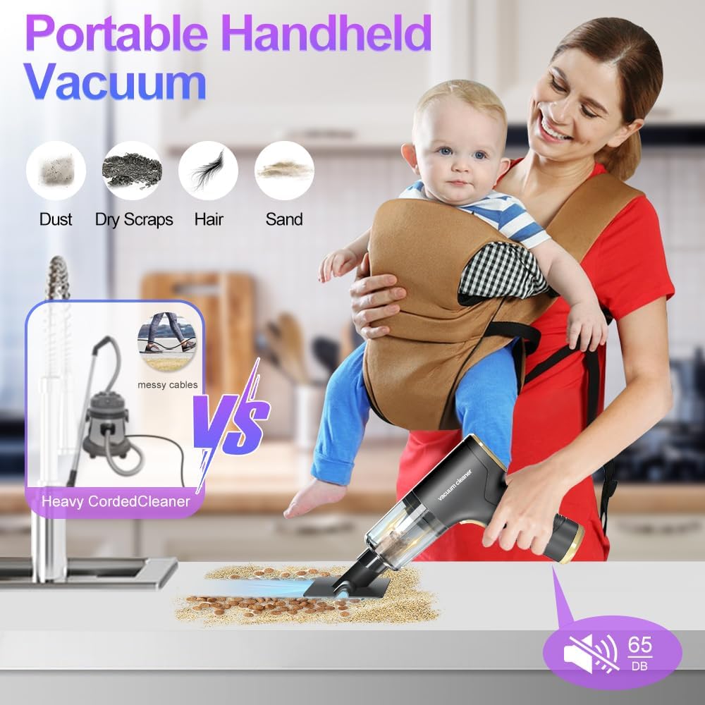 【مكنسة صغيرة للسيارة】: مكنسة كهربائية محمولة صغيرة الحجم ومريحة للتخزين. سواء كانت في السيارة أو في المنزل، يمكن وضعها في أي مكان حسب الرغبة. والوزن الذاتي 0.4 كغم فقط، ولا يوجد ضغط لاستخدامه بيد واحدة، ويمكنه تنظيف أي بقع بسرعة وسهولة.