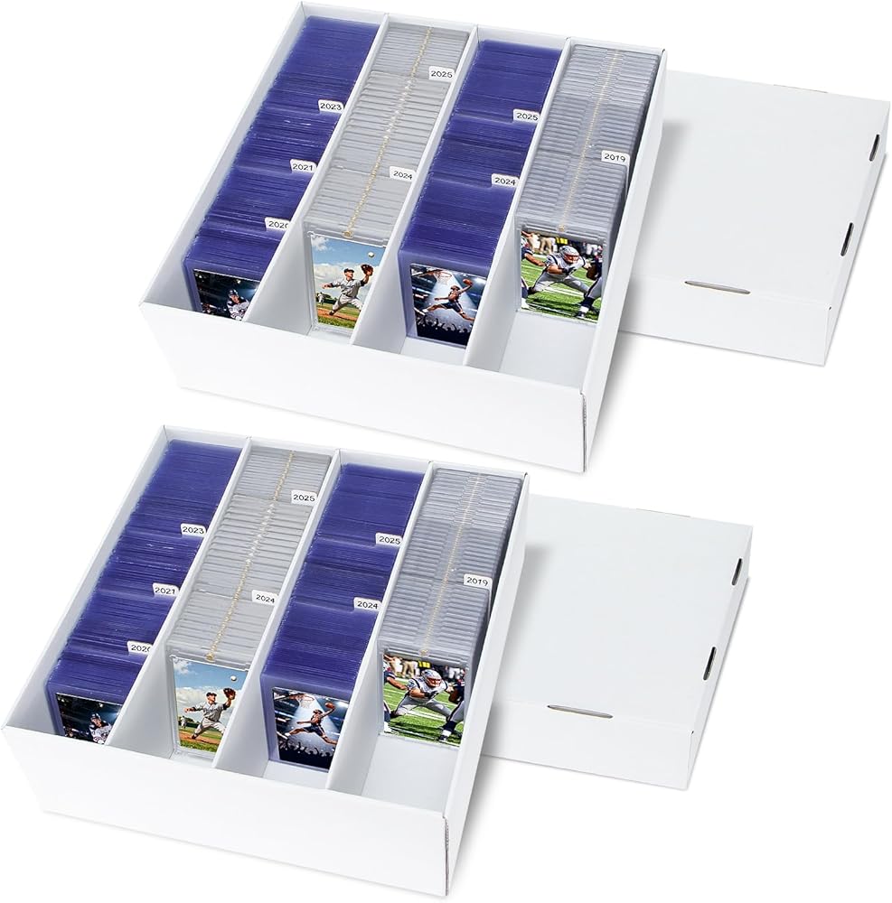 • متينة وموثوقة: مصنوعة من مواد كرتونية عالية الجودة، صناديق تخزين البطاقات الرياضية هذه مصممة لتدوم طويلاً. ويضمن تصميمها القوي حماية بطاقاتك القيمة بشكل جيد ضد الغبار والأضرار الأخرى