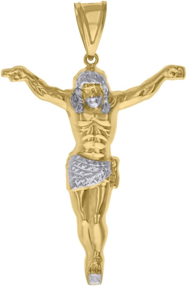• PRODUCT SPECIFICATIONS : 14k Two-tone Gold Jesus Religious Charm Pendant, 14k Two-tone Gold Jesus Religious Charm Pendant, 2.8gram, Length 53, Width 33.7, Diamond-Cut, Single Bail