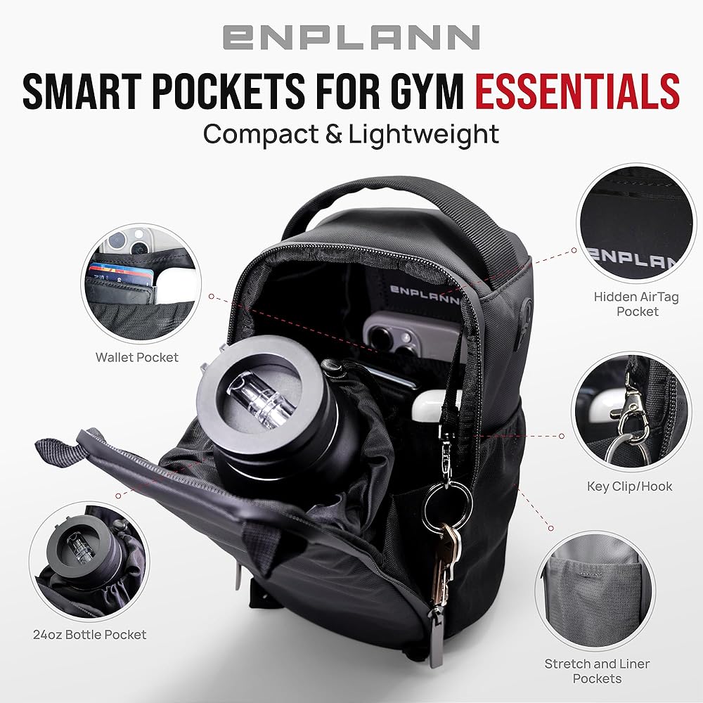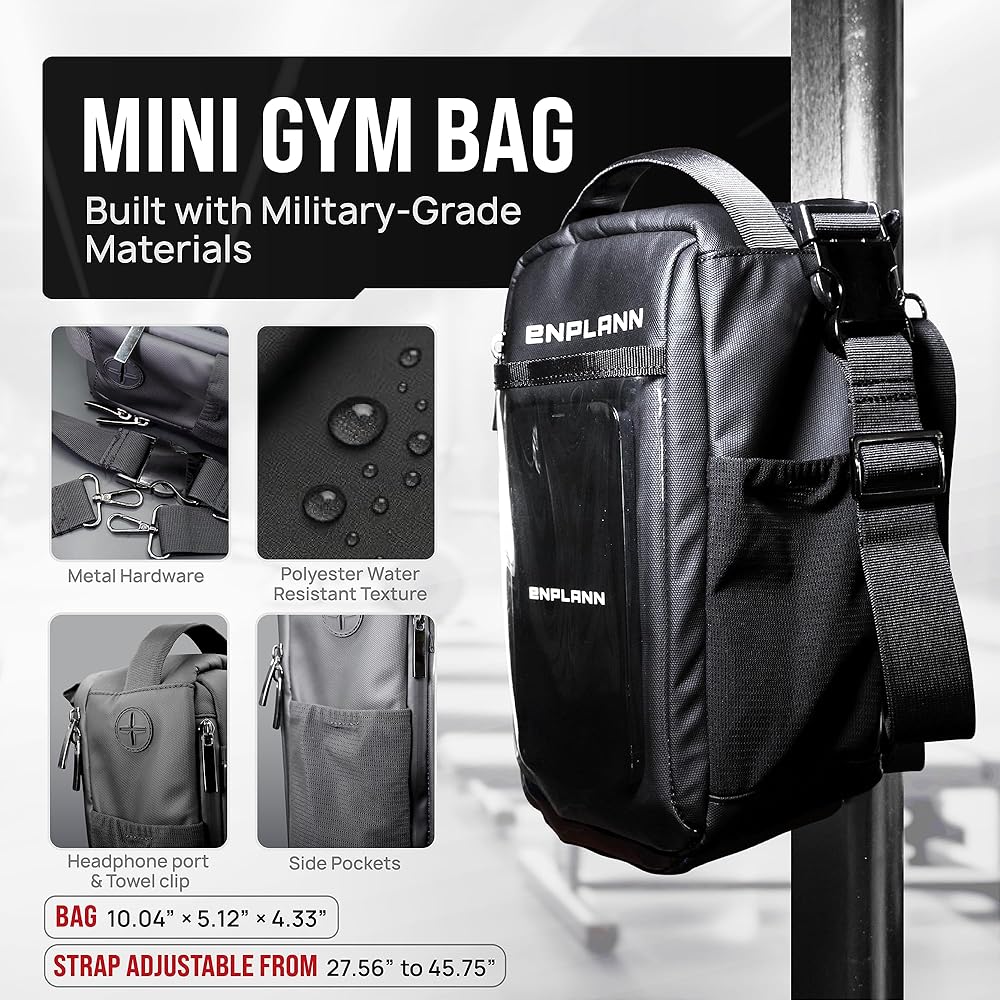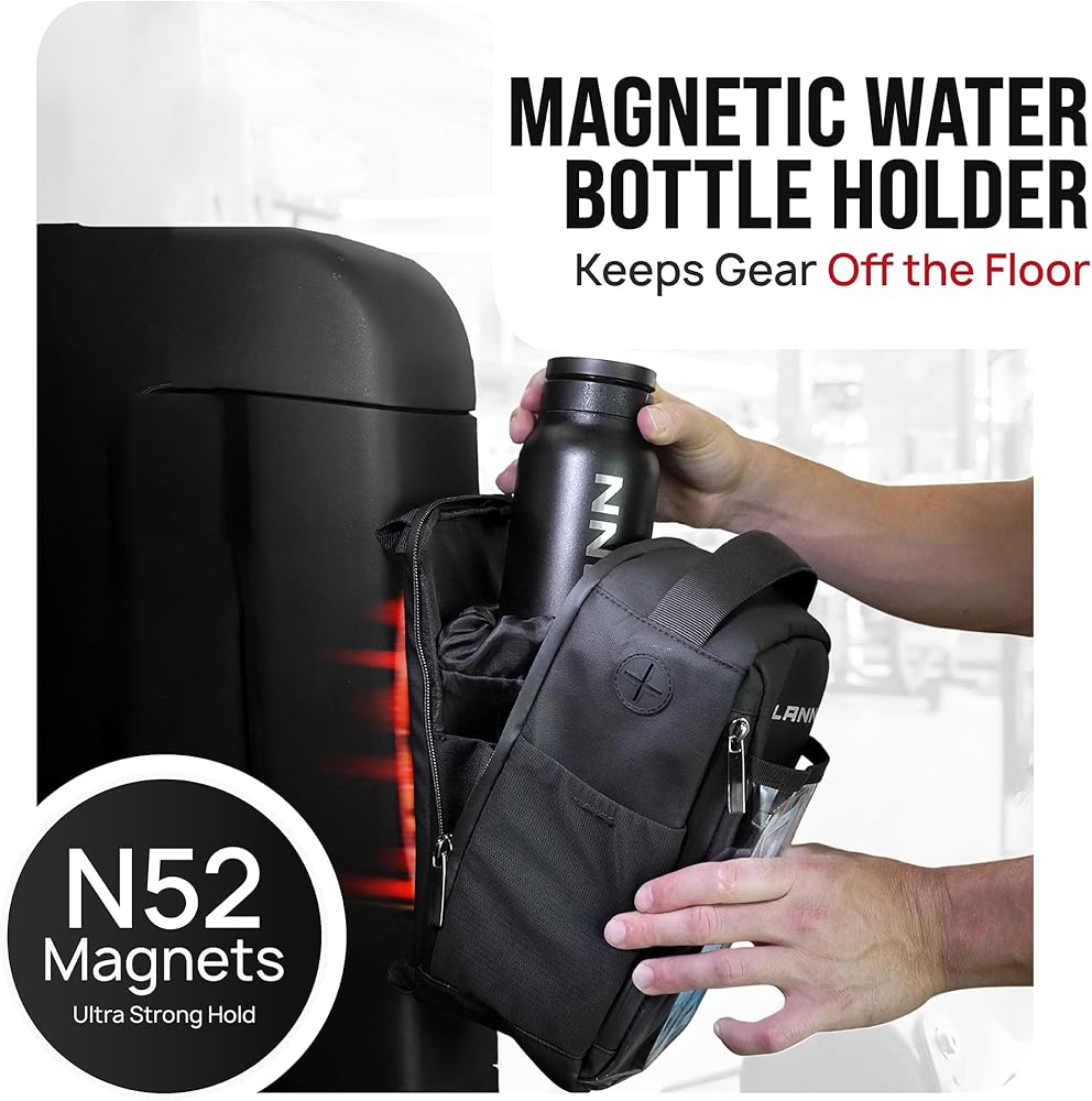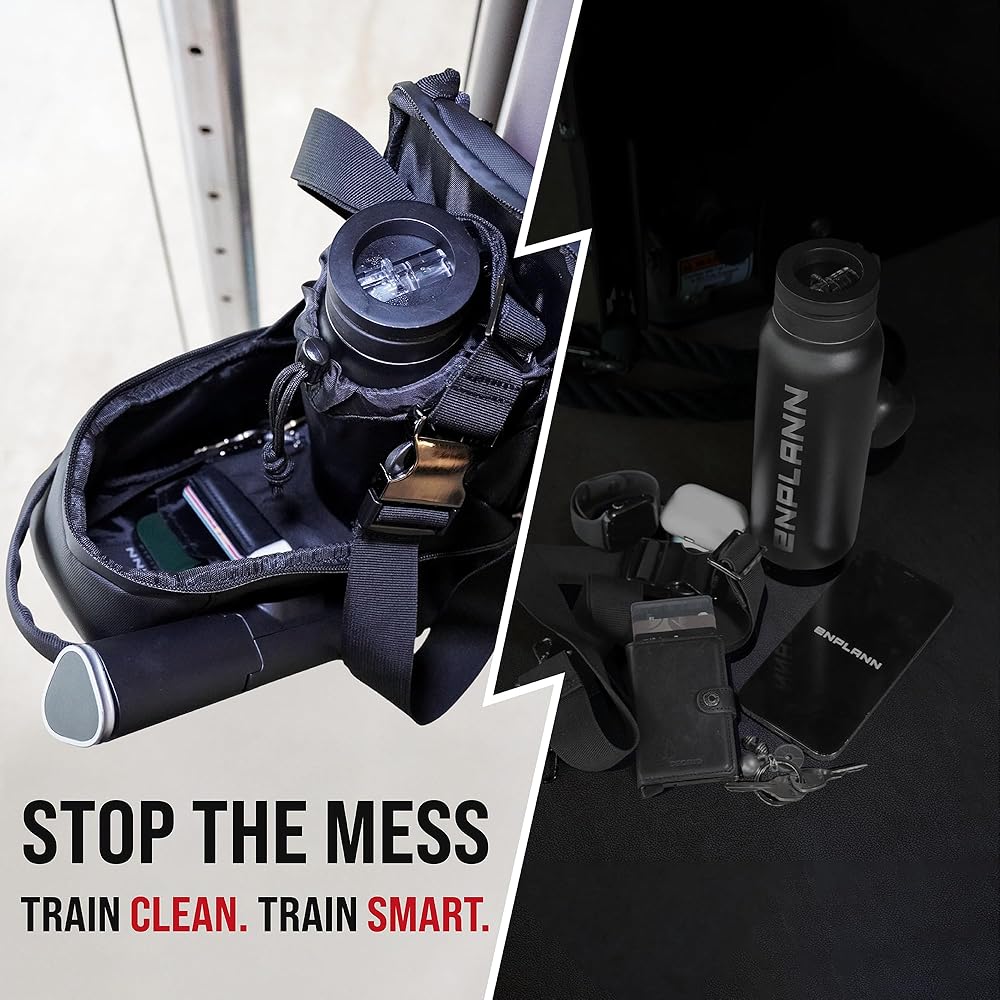 حقيبة الجيم المغناطيسية الصغيرة | حقيبة زجاجة مياه مغناطيسية للجيم | حقيبة كروس صغيرة مثالية للتمارين المركزة | حقيبة رياضية صغيرة للنساء والرجال | حامل زجاجة ماء مع حزام (أسود)
