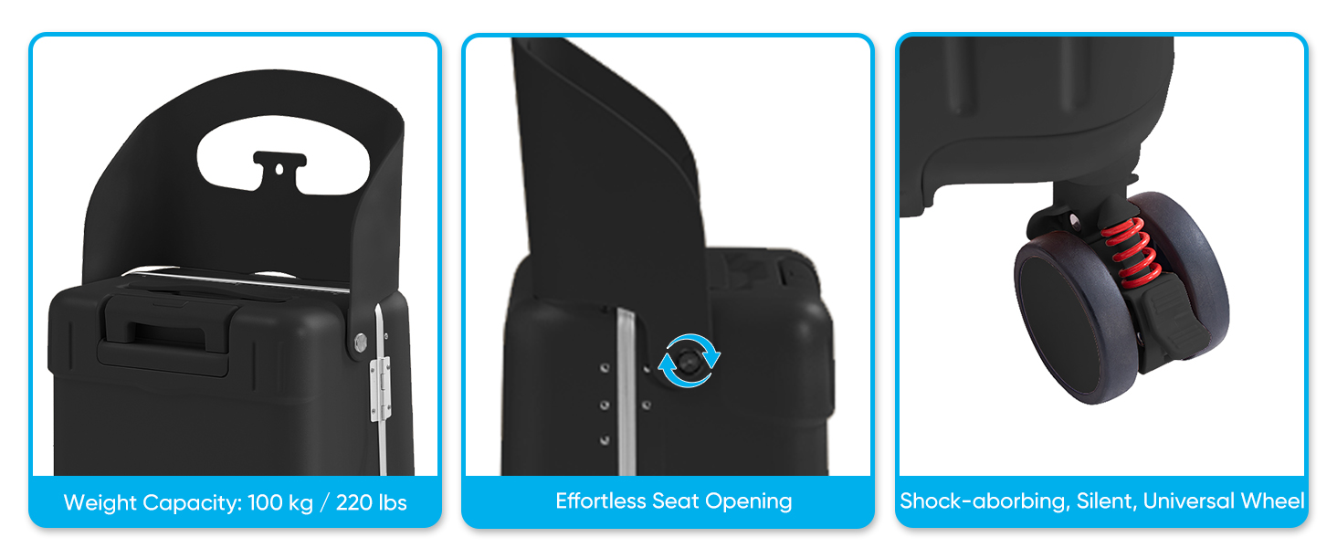【تجربة ركوب آمنة وممتعة】تتميز الأمتعة بتصميم فريد مزدوج العجلات في الأمام لضمان التوازن أثناء الركوب. توفر العجلات المصنوعة من مادة البولي يوريثان قيادة سلسة وهادئة، وهي متينة للغاية وتدوم طويلاً، ويمكنها التعامل مع مشاكل السفر، مما يعزز السلامة والمتعة للمسافرين الصغار.