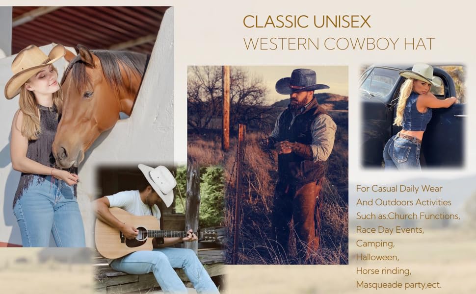 ملاءمة مثالية للجنسين: تم تصميم قبعة رعاة البقر هذه لتناسب معظم البالغين بشكل مريح. يتوافق المقاس L/XL مع مقاسات القبعة الأمريكية من 7 1/8 إلى 7 1/4، بينما يناسب XL-XXL المقاسات من 7 3/8 إلى 7 5/8. نوصي بقياس محيط رأسك للحصول على أفضل ملاءمة. التصميم للجنسين يناسب الرجال والنساء الذين يبحثون عن مظهر غربي أصيل.