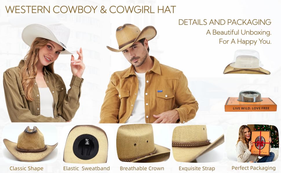 تغليف فاخر جاهز للهدايا: تصل كل قبعة في صندوق هدايا قوي وأنيق، وجاهز لتقديمه في أعياد الميلاد أو الكريسماس أو أي مناسبة خاصة. إنها هدية مدروسة لأي شخص يقدر النمط الغربي الحقيقي.
