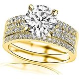 Houston Diamond District IGI CERTIFIED LAB GROWN DIAMOND Three Row Prong And Middle Row Channel Set Round Diamonds Engagement Ring and Wedding Band Set